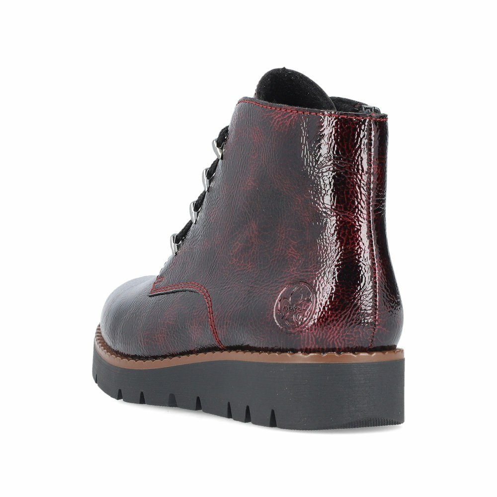 Dámske zateplené topánky z kolekcie Rieker. Sú skvelým doplnením každého elegantného ale aj ležérneho outfitu. Priestorný tvar špičky, mäkký a hrejivý materiál vás zahalí do pohodlia v mrazivých dňoch. Pre ľahké obutie je zapracovaný funkčný zips a šnúrky na šnurovanie. Vďaka pevnému šnurovaniu tento model topánok pevne priľne k nohe po celej dĺžke. Viazanie zároveň esteticky dotvára zvršok obuvi v klasickom štýle. Pre všetkých, ktorí sa chcú v topánkach cítiť pohodlne a štýlovo. Pružná a robustná podošva dokonale dopĺňa športový dizajn, postará sa o Vaše pohodlie na každom kroku, tlmí nárazy a otrasy. Vďaka unikátnym vlastnostiam podošvy zažijete jedinečný pocit ľahkosti pri chôdzi. Ak denne trávite na nohách viac času tak značka Rieker je skutočne tou pravou voľbou pre Vás. Ide doslova o vychádzkovú obuv ktorá vydrží v plnej kvalite naozaj veľmi dlhý čas.