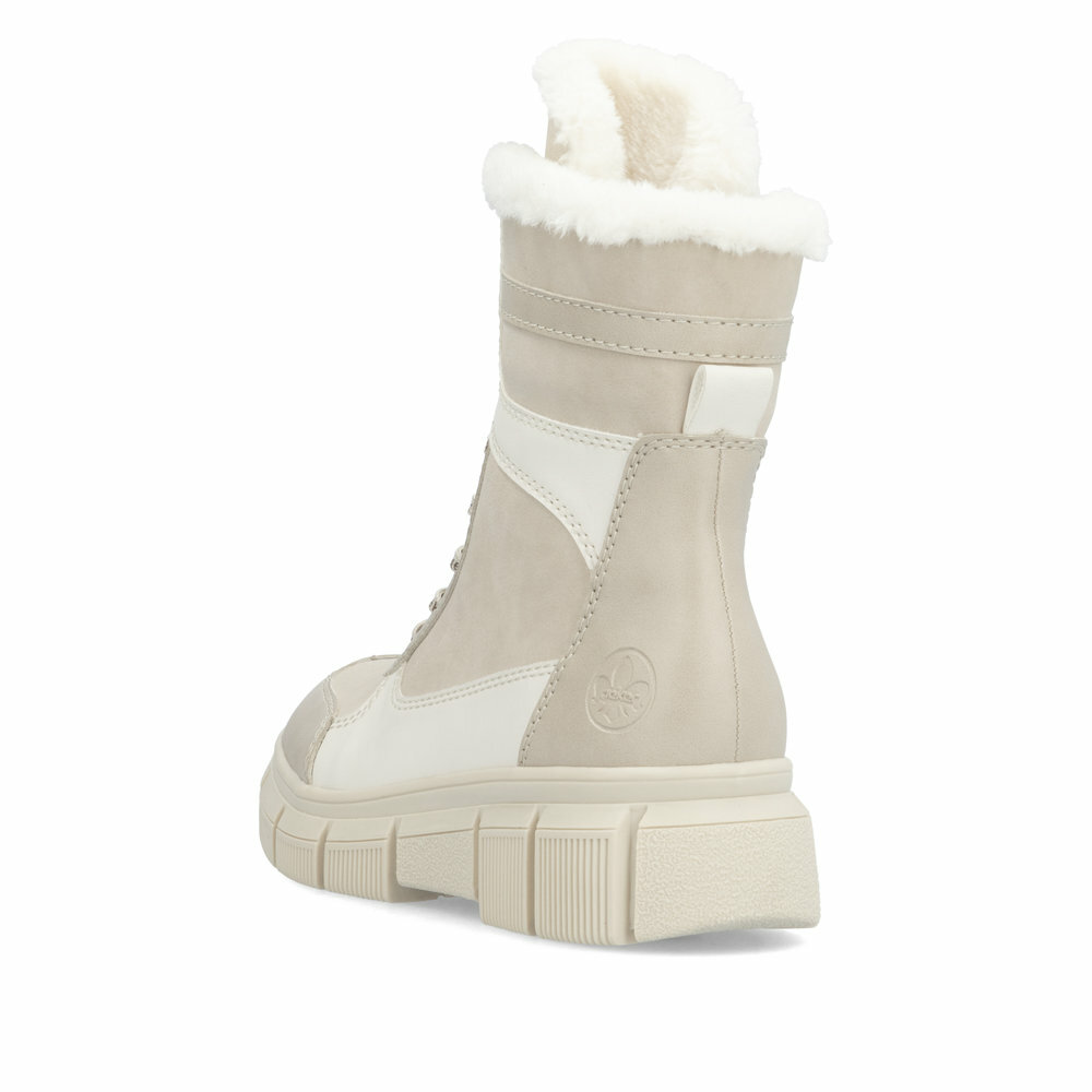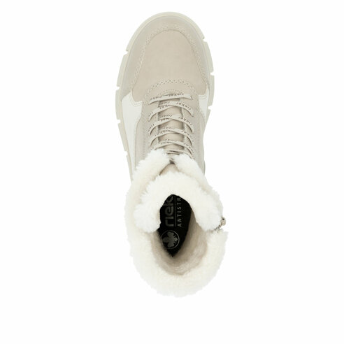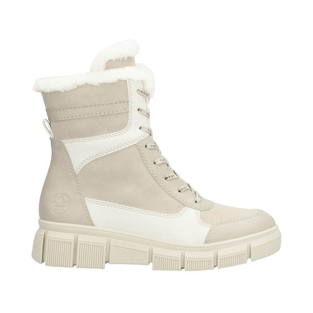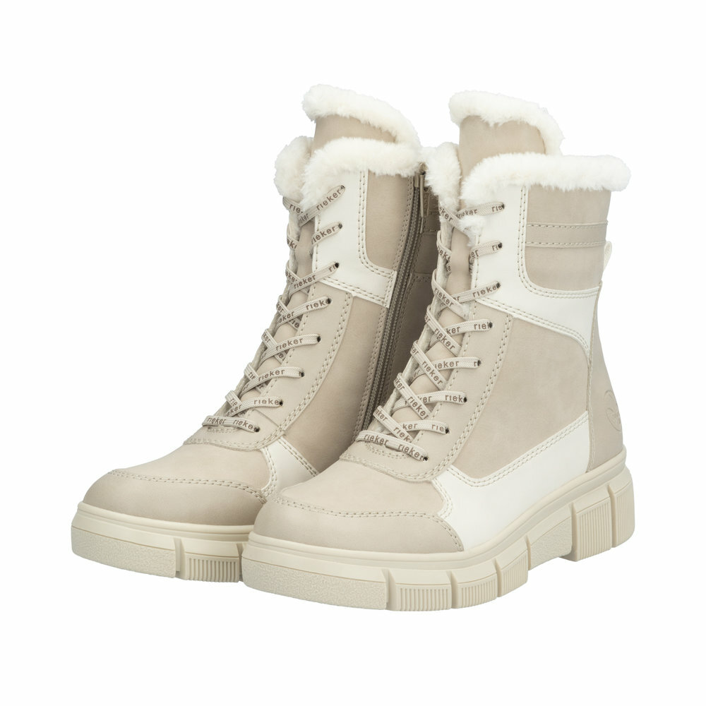 Dámske zateplené topánky, workery z kolekcie Rieker. Sú skvelým doplnením každého elegantného ale aj ležérneho outfitu. Priestorný tvar špičky, mäkký a hrejivý materiál vás zahalí do pohodlia v mrazivých dňoch. Pre ľahké obutie je zapracovaný funkčný zips a šnúrky na šnurovanie. Vďaka pevnému šnurovaniu tento model topánok pevne priľne k nohe po celej dĺžke. Viazanie zároveň esteticky dotvára zvršok obuvi v klasickom štýle. Pre všetkých, ktorí sa chcú v topánkach cítiť pohodlne a štýlovo. Pružná a robustná podošva dokonale dopĺňa športový dizajn, postará sa o Vaše pohodlie na každom kroku, tlmí nárazy a otrasy. Vďaka unikátnym vlastnostiam podošvy zažijete jedinečný pocit ľahkosti pri chôdzi. Ak denne trávite na nohách viac času tak značka Rieker je skutočne tou pravou voľbou pre Vás. Ide doslova o vychádzkovú obuv ktorá vydrží v plnej kvalite naozaj veľmi dlhý čas.