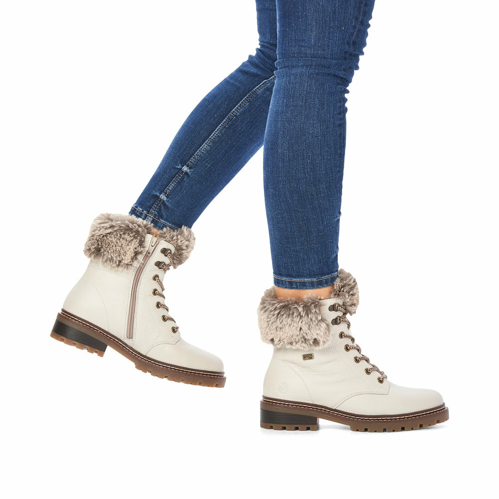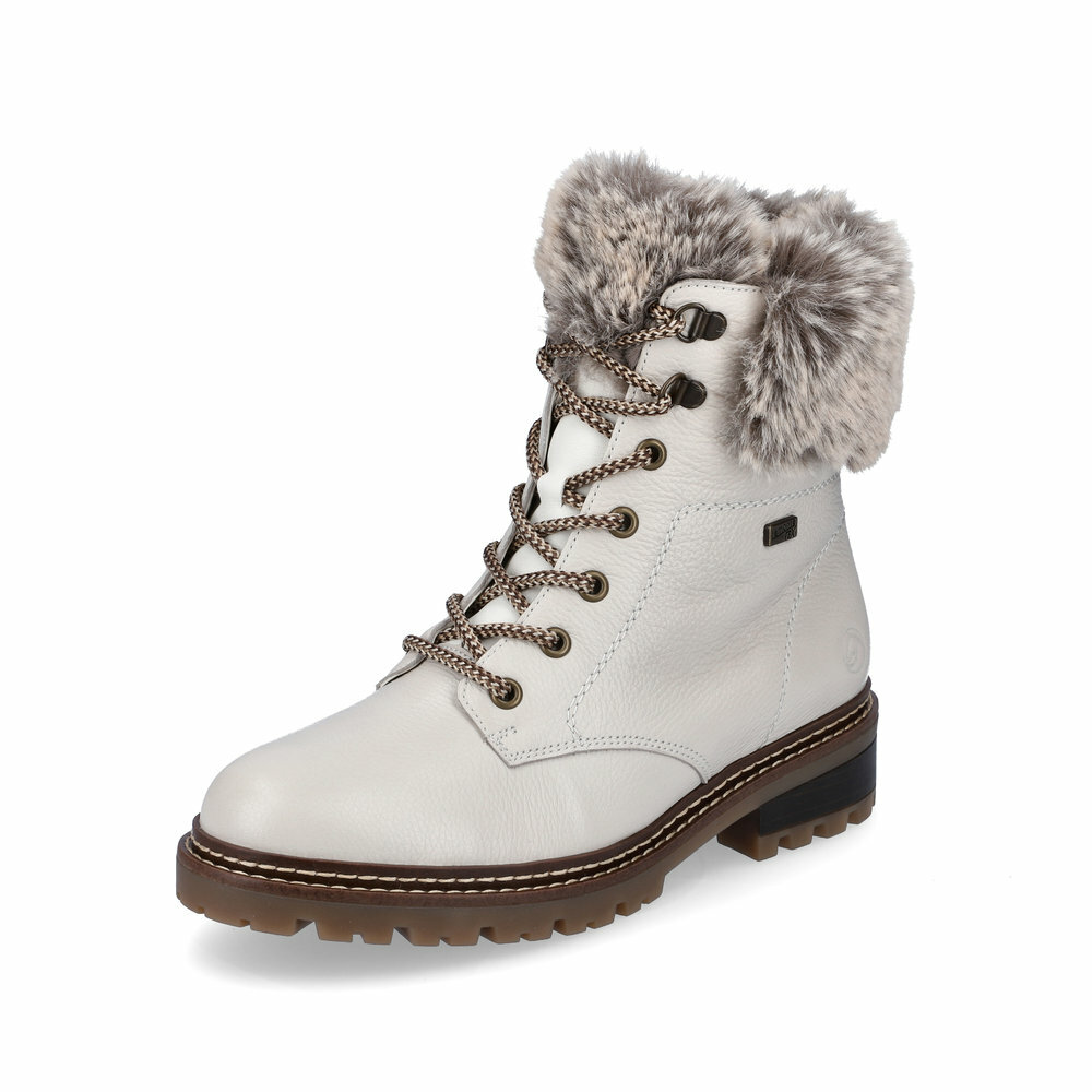 Dámske kožené topánky z kolekcie Remonte - Rieker. Určite si ich zamilujete vďaka ich pohodlnosti a mäkkosti. Priestorný strih, mäkký a hrejivý materiál vás zahalí do pohodlia v mrazivých dňoch. Pre ľahké obutie je zapracovaný funkčný zips a šnúrky na šnurovanie. Vďaka pevnému šnurovaniu tento model topánok pevne priľne k nohe po celej dĺžke. Viazanie zároveň esteticky dotvára zvršok obuvi v klasickom štýle. Pružná podošva dokonale dopĺňa dizajn, postará sa o Vaše pohodlie na každom kroku, tlmí nárazy a otrasy. Je to ideálny model, ktorý oceníte pri ceste do práce, ale aj pri bežných pochôdzkach. Kožené topánky sú zaručenou klasikou, zaručia Vám vysokú kvalitu a ide o pár, ktorý vám vydrží niekoľko sezón. Obuv REMONTE - jedná sa o vyššiu radu značky RIEKER, táto obuv sa vyznačuje vynikajúcou kombináciou vrchných materiálov. Topánky Vám zabezpečia maximálny komfort pri celodennom nosení. Pre všetkých, ktorí sa chcú v topánkach cítiť pohodlne a štýlovo. TEX - funkčná vrstva, vďaka ktorej je topánka nepremokavá