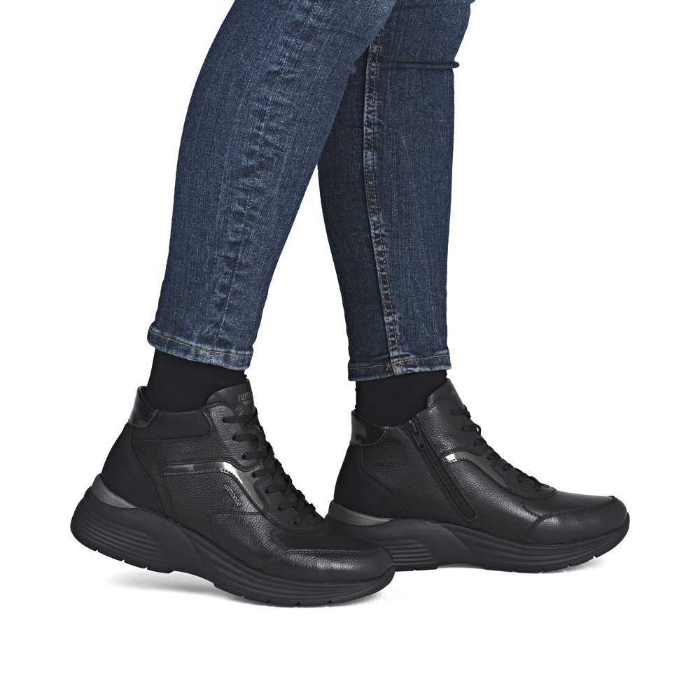 Dámske kožené tenisky z kolekcie značky Remonte - Rieker. Pohodlne a štýlovo, tak sa budete cítiť v tomto modeli topánok. Príjemne mäkká stielka, ohybná podošva s optimálnou výškou klinu. Vďaka pevnému šnurovaniu tento model topánok pevne priľne k nohe po celej dĺžke. Viazanie zároveň esteticky dotvára zvršok obuvi v klasickom štýle. Pružná a robustná podošva dokonale dopĺňa dizajn, postará sa o Vaše pohodlie na každom kroku, tlmí nárazy a otrasy. Mäkká stielka, ktorá podporí príjemný došľap, nadväzuje na zabrúsenú pätnú časť. Vďaka jej vlastnostiam je táto obuv vyhľadávaná všetkými, ktorí musia počas dňa dlho stáť a chodiť. Po vyčerpávajúcom a náročnom dni sa budú Vaše nohy cítiť svieže a oddýchnuté a to najmä vďaka ľahkým materiálom.