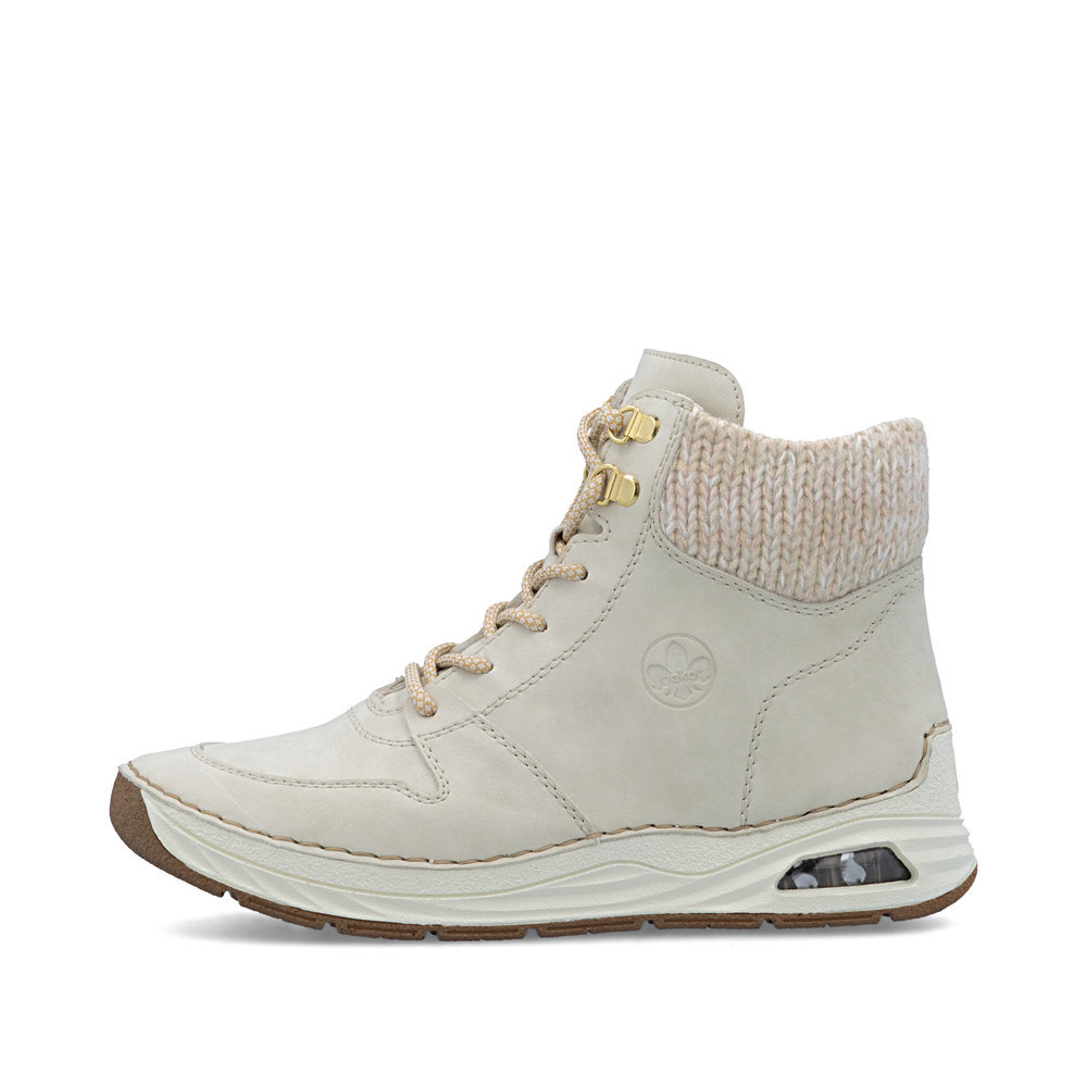 Dámske topánky z kolekcie značky Rieker. Určite si ich zamilujete vďaka ich pohodlnosti a mäkkosti. Priestorný strih, mäkký a hrejivý materiál vás zahalí do pohodlia v mrazivých dňoch. Vďaka pevnému šnurovaniu tento model topánok pevne priľne k nohe po celej dĺžke. Viazanie zároveň esteticky dotvára zvršok obuvi v klasickom štýle. Pre všetkých, ktorí sa chcú v topánkach cítiť pohodlne a štýlovo. Pružná a robustná podošva dokonale dopĺňa športový dizajn, postará sa o Vaše pohodlie na každom kroku, tlmí nárazy a otrasy. Vďaka unikátnym vlastnostiam podošvy zažijete jedinečný pocit ľahkosti pri chôdzi. Ak denne trávite na nohách viac času tak značka Rieker je skutočne tou pravou voľbou pre Vás. Ide doslova o vychádzkovú obuv ktorá vydrží v plnej kvalite naozaj veľmi dlhý čas.