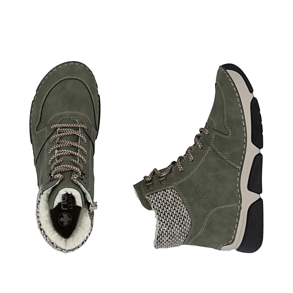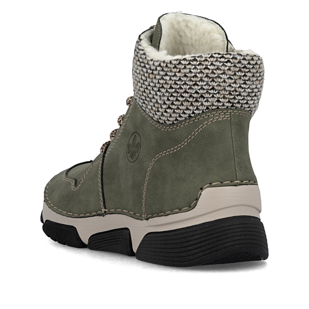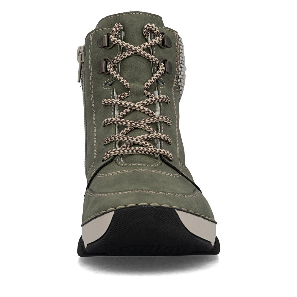 Dámske zateplené topánky z kolekcie značky Rieker. Určite si ich zamilujete vďaka ich pohodlnosti a mäkkosti. Priestorný tvar špičky, mäkký a hrejivý materiál vás zahalí do pohodlia v mrazivých dňoch. Pre ľahké obutie je zapracovaný funkčný zips a šnúrky na šnurovanie. Vďaka pevnému šnurovaniu tento model topánok pevne priľne k nohe po celej dĺžke. Viazanie zároveň esteticky dotvára zvršok obuvi v klasickom štýle. Pre všetkých, ktorí sa chcú v topánkach cítiť pohodlne a štýlovo. Vďaka unikátnym vlastnostiam podošvy zažijete jedinečný pocit ľahkosti pri chôdzi. Ak denne trávite na nohách viac času tak značka Rieker je skutočne tou pravou voľbou pre Vás. Ide doslova o vychádzkovú obuv ktorá vydrží v plnej kvalite naozaj veľmi dlhý čas.