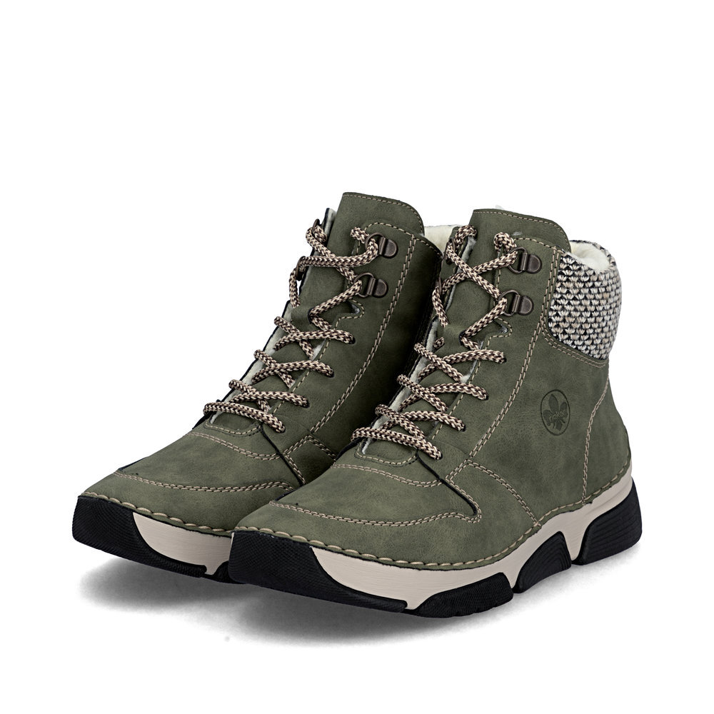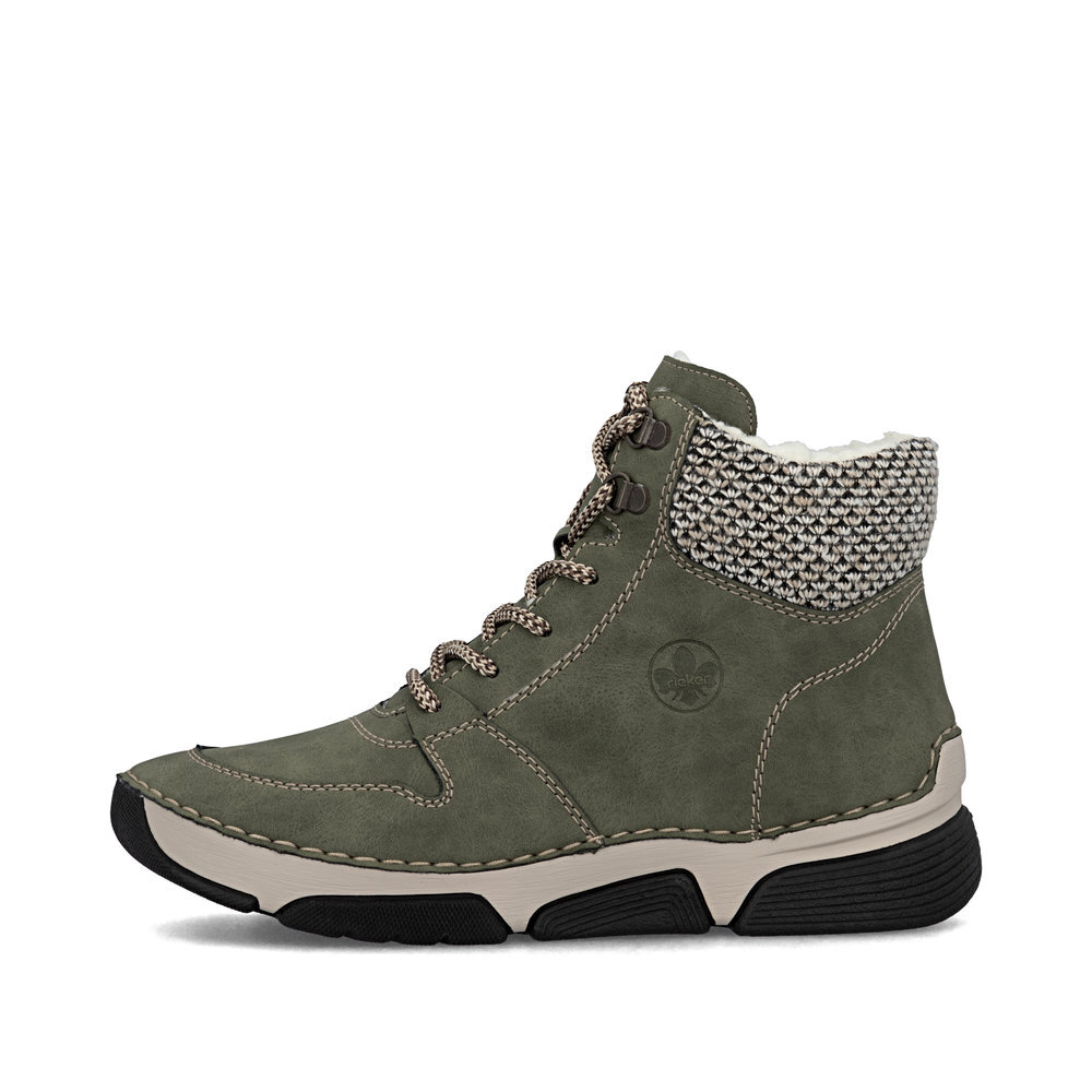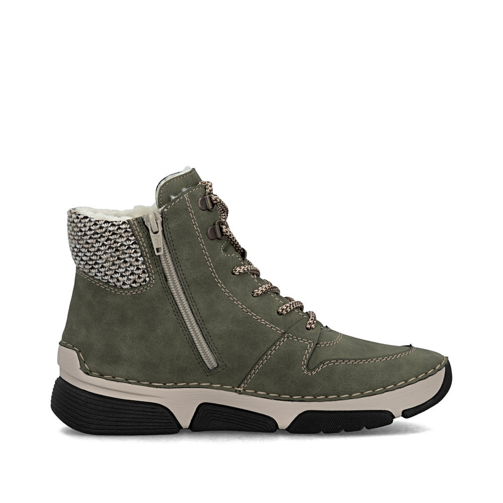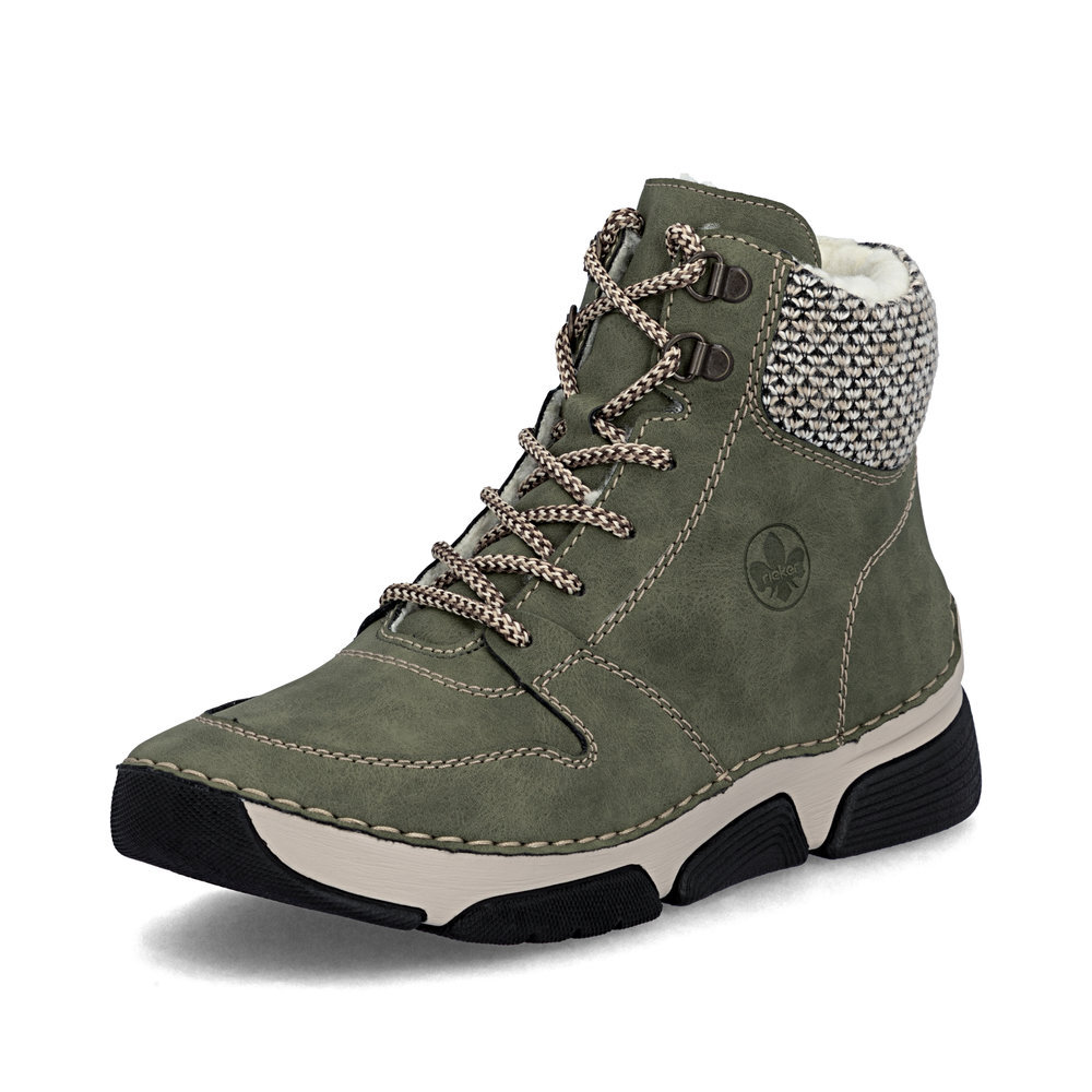 Dámske zateplené topánky z kolekcie značky Rieker. Určite si ich zamilujete vďaka ich pohodlnosti a mäkkosti. Priestorný tvar špičky, mäkký a hrejivý materiál vás zahalí do pohodlia v mrazivých dňoch. Pre ľahké obutie je zapracovaný funkčný zips a šnúrky na šnurovanie. Vďaka pevnému šnurovaniu tento model topánok pevne priľne k nohe po celej dĺžke. Viazanie zároveň esteticky dotvára zvršok obuvi v klasickom štýle. Pre všetkých, ktorí sa chcú v topánkach cítiť pohodlne a štýlovo. Vďaka unikátnym vlastnostiam podošvy zažijete jedinečný pocit ľahkosti pri chôdzi. Ak denne trávite na nohách viac času tak značka Rieker je skutočne tou pravou voľbou pre Vás. Ide doslova o vychádzkovú obuv ktorá vydrží v plnej kvalite naozaj veľmi dlhý čas.