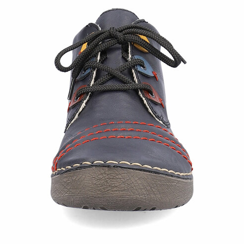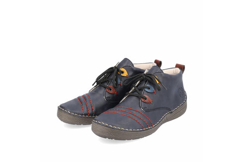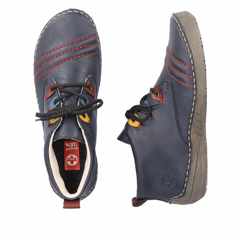 Dámske topánky z kolekcie značky Rieker. Sú módne a na nohe vyzerajú absolútne originálne. Priestorný strih, mäkký a hrejivý materiál vás zahalí do pohodlia v chladných dňoch. Vďaka pevnému šnurovaniu tento model topánok pevne priľne k nohe po celej dĺžke. Viazanie zároveň esteticky dotvára zvršok obuvi v klasickom štýle. Pružná podošva dokonale dopĺňa športový dizajn, postará sa o Vaše pohodlie na každom kroku, tlmí nárazy a otrasy. Vďaka unikátnym vlastnostiam podošvy zažijete jedinečný pocit ľahkosti pri chôdzi. Ak denne trávite na nohách viac času tak značka Rieker je skutočne tou pravou voľbou pre Vás. Ide doslova o vychádzkovú obuv ktorá vydrží v plnej kvalite naozaj veľmi dlhý čas. Po vyčerpávajúcom a náročnom dni sa budú Vaše nohy cítiť svieže a oddýchnuté a to najmä vďaka ľahkým materiálom a konštrukcii.