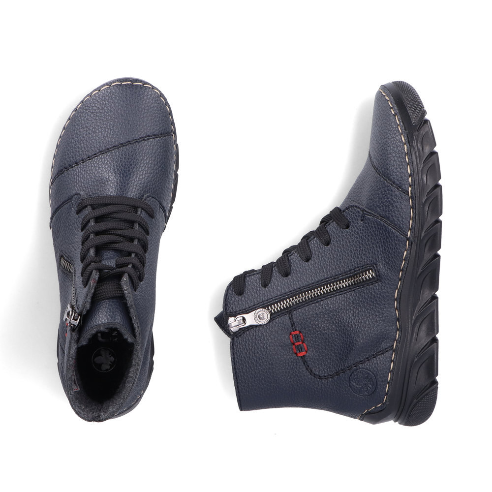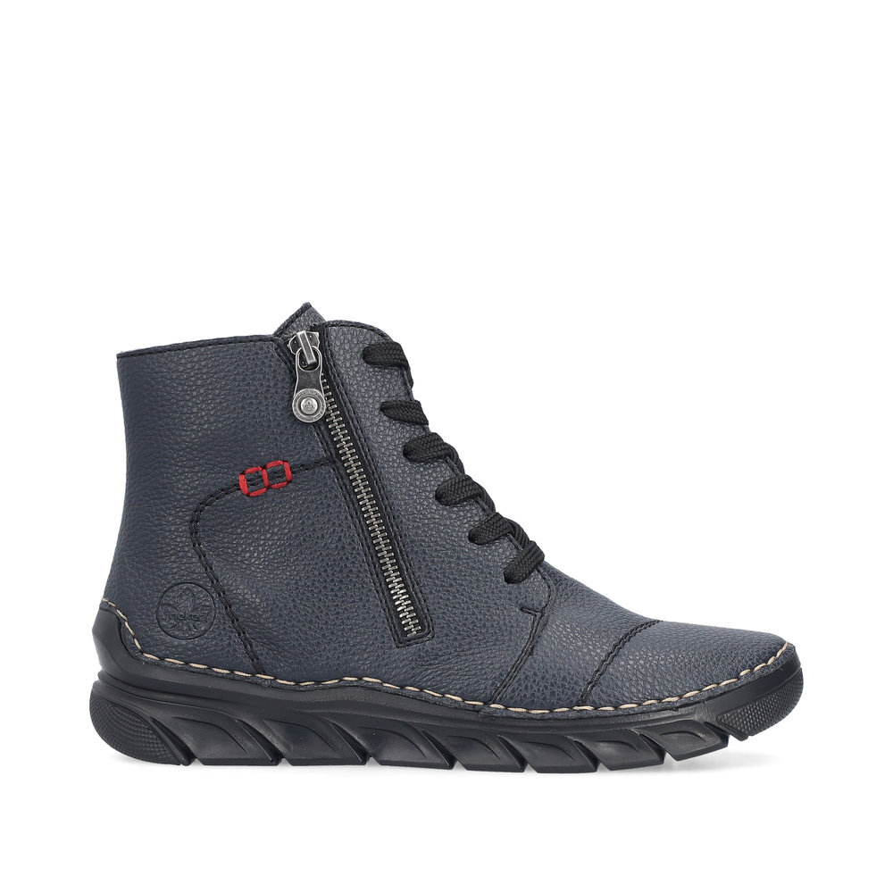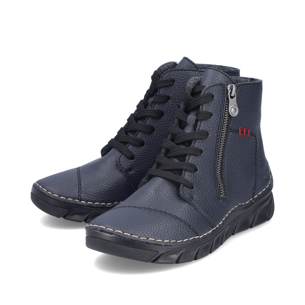Dámske zateplené topánky z kolekcie značky Rieker. Určite si ich zamilujete vďaka ich pohodlnosti a mäkkosti. Priestorný tvar špičky, mäkký a hrejivý materiál vás zahalí do pohodlia v mrazivých dňoch. Pre ľahké obutie je zapracovaný funkčný zips a šnúrky na šnurovanie. Vďaka pevnému šnurovaniu tento model topánok pevne priľne k nohe po celej dĺžke. Viazanie zároveň esteticky dotvára zvršok obuvi v klasickom štýle. Pre všetkých, ktorí sa chcú v topánkach cítiť pohodlne a štýlovo. Vďaka unikátnym vlastnostiam podošvy zažijete jedinečný pocit ľahkosti pri chôdzi. Ak denne trávite na nohách viac času tak značka Rieker je skutočne tou pravou voľbou pre Vás. Ide doslova o vychádzkovú obuv ktorá vydrží v plnej kvalite naozaj veľmi dlhý čas.