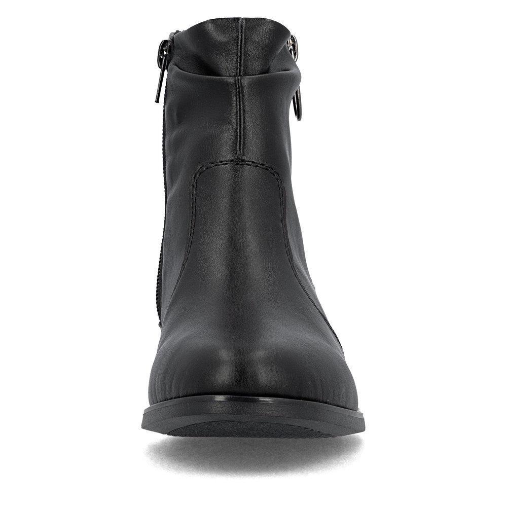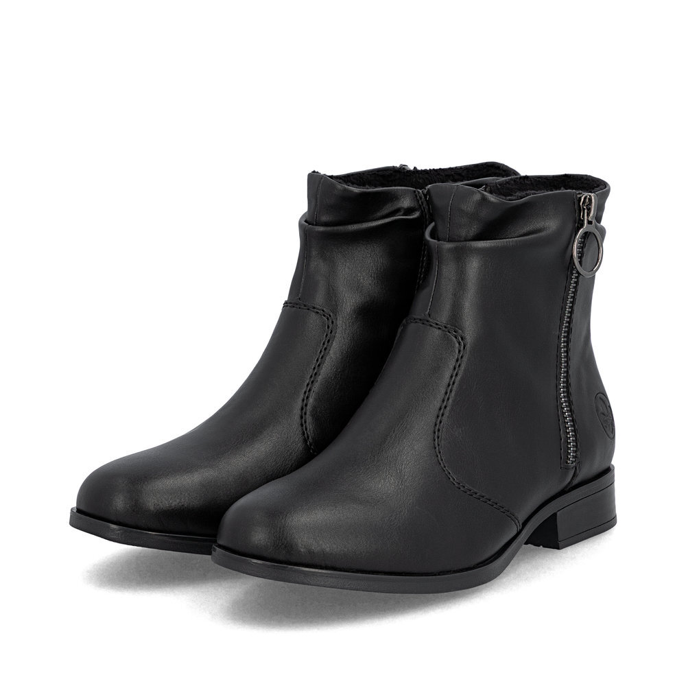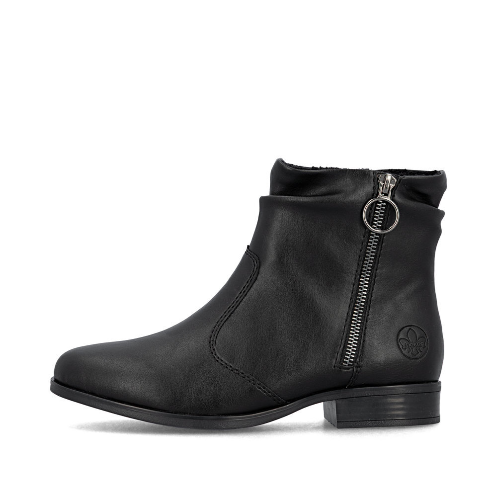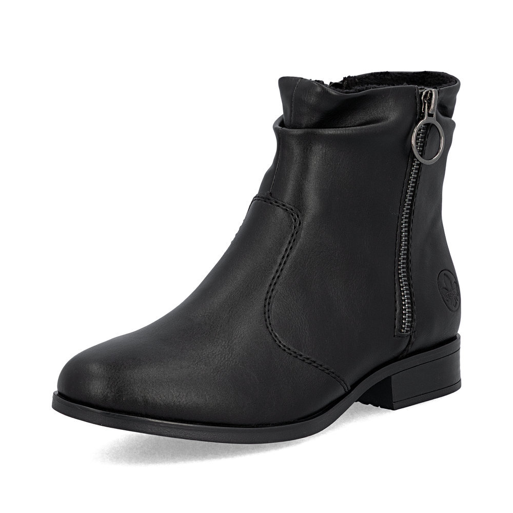 Dámske zateplené kotníkové topánky z kolekcie značky Rieker na nízkom podpätku. Priestorný strih, mäkký a hrejivý materiál vás zahalí do pohodlia v mrazivých dňoch. Pre všetkých, ktorí sa chcú v topánkach cítiť pohodlne a štýlovo. Pre ľahké obutie je zapracovaný funkčný zips. Sú skvelým doplnením každého elegantného ale aj ležérneho outfitu. Pružná podošva dokonale dopĺňa dizajn, postará sa o Vaše pohodlie na každom kroku, tlmí nárazy a otrasy. Vďaka unikátnym vlastnostiam podošvy zažijete jedinečný pocit ľahkosti pri chôdzi. Ak denne trávite na nohách viac času tak značka Rieker je skutočne tou pravou voľbou pre Vás. Ide doslova o vychádzkovú obuv ktorá vydrží v plnej kvalite naozaj veľmi dlhý čas.