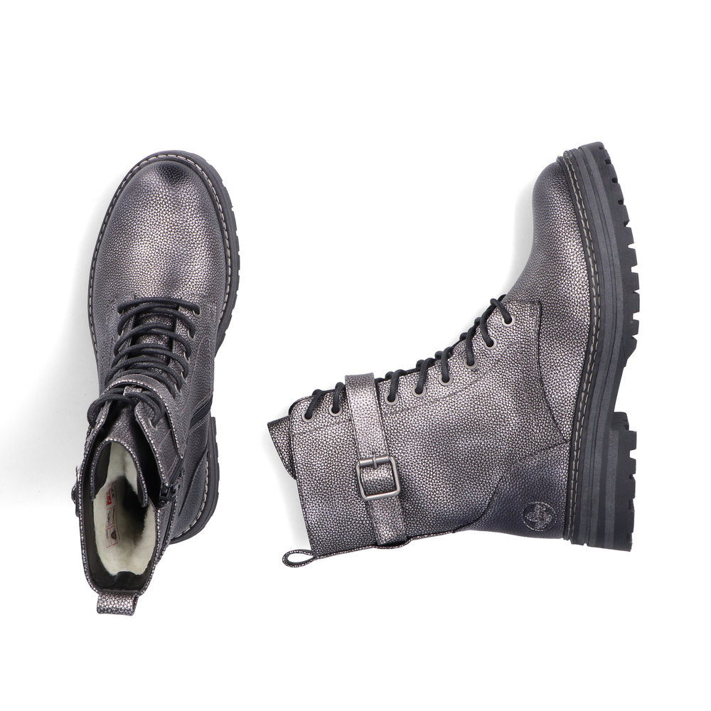 Dámske zateplené topánky, workery z kolekcie Rieker. Určite si ich zamilujete vďaka ich pohodlnosti a mäkkosti. Priestorný tvar špičky, mäkký a hrejivý materiál vás zahalí do pohodlia v mrazivých dňoch. Pre ľahké obutie je zapracovaný funkčný zips a šnúrky na šnurovanie. Vďaka pevnému šnurovaniu tento model topánok pevne priľne k nohe po celej dĺžke. Viazanie zároveň esteticky dotvára zvršok obuvi v klasickom štýle. Pre všetkých, ktorí sa chcú v topánkach cítiť pohodlne a štýlovo. Pružná a robustná podošva dokonale dopĺňa športový dizajn, postará sa o Vaše pohodlie na každom kroku, tlmí nárazy a otrasy. Vďaka unikátnym vlastnostiam podošvy zažijete jedinečný pocit ľahkosti pri chôdzi. Ak denne trávite na nohách viac času tak značka Rieker je skutočne tou pravou voľbou pre Vás. TEX - funkčná vrstva, vďaka ktorej je topánka nepremokavá a napriek tomu priedušná.