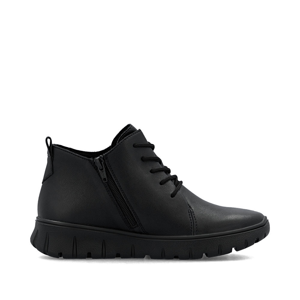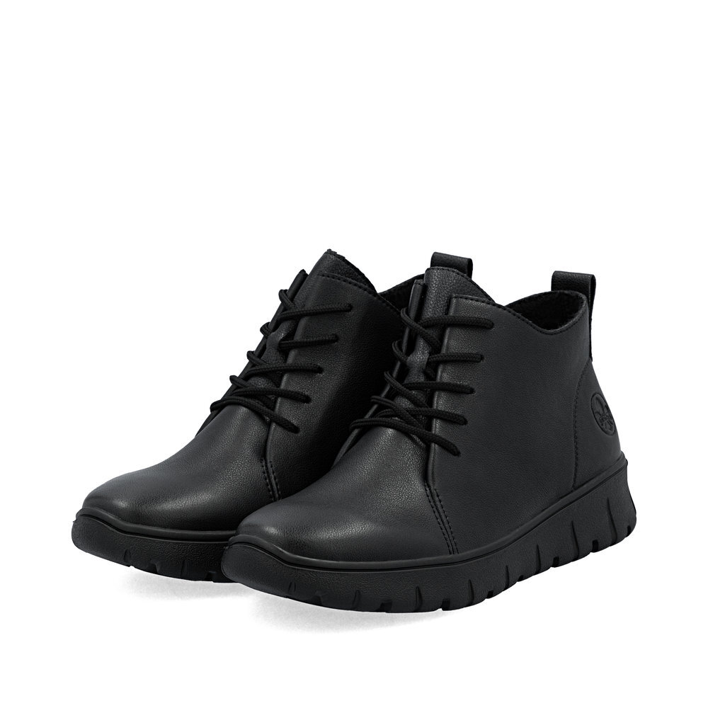 Dámske kotníkové topánky z kolekcie značky Rieker. Sú skvelým doplnením každého elegantného ale aj ležérneho outfitu. Priestorný strih, mäkký a hrejivý materiál vás zahalí do pohodlia v mrazivých dňoch. Pre všetkých, ktorí sa chcú v topánkach cítiť pohodlne a štýlovo. Vďaka pevnému šnurovaniu tento model topánok pevne priľne k nohe po celej dĺžke. Viazanie zároveň esteticky dotvára zvršok obuvi v klasickom štýle. Pružná podošva dokonale dopĺňa dizajn, postará sa o Vaše pohodlie na každom kroku, tlmí nárazy a otrasy. Vďaka unikátnym vlastnostiam podošvy zažijete jedinečný pocit ľahkosti pri chôdzi. Ak denne trávite na nohách viac času tak značka Rieker je skutočne tou pravou voľbou pre Vás. Ide doslova o vychádzkovú obuv ktorá vydrží v plnej kvalite naozaj veľmi dlhý čas.