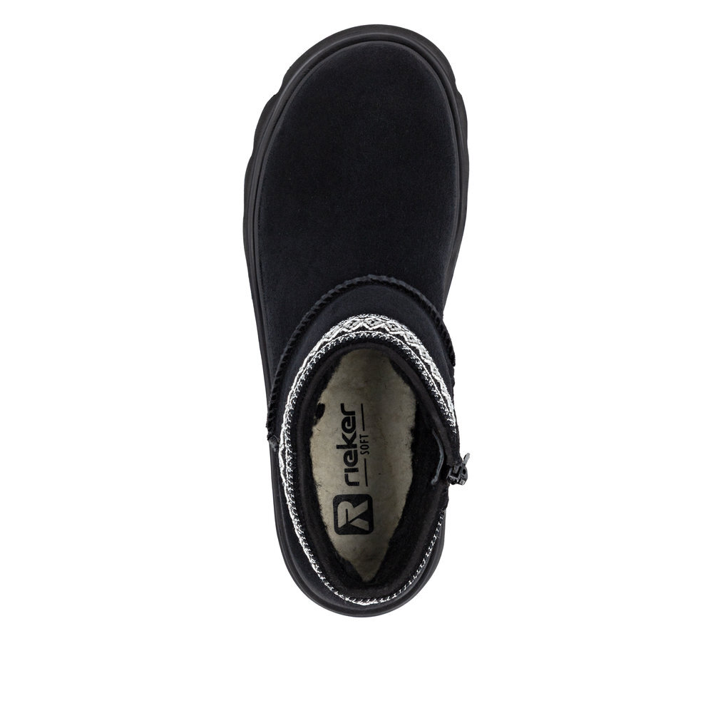 Dámske kožené topánky, snehule z kolekcie Rieker - Revolution. Sú módne a na nohe vyzerajú absolútne originálne. Priestorný strih, mäkký a hrejivý materiál vás zahalí do pohodlia v mrazivých dňoch. Pre všetkých, ktorí sa chcú v topánkach cítiť pohodlne a štýlovo. Pružná a robustná podošva dokonale dopĺňa športový dizajn, postará sa o Vaše pohodlie na každom kroku, tlmí nárazy a otrasy. Vďaka unikátnym vlastnostiam podošvy zažijete jedinečný pocit ľahkosti pri chôdzi. Ak denne trávite na nohách viac času tak značka Rieker je skutočne tou pravou voľbou pre Vás. Ide doslova o vychádzkovú obuv ktorá vydrží v plnej kvalite naozaj veľmi dlhý čas.