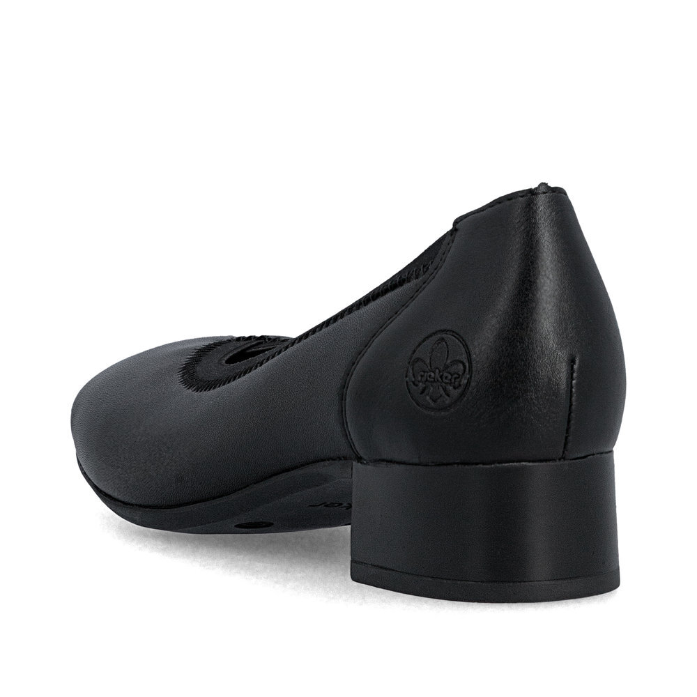 Ležérny strih dámskych kožených lodičiek z kolekcie Rieker na nízkom podpätku. Priestorný strih. Optimálna, pohodlná výška podpätku. Kožené topánky sú zaručenou klasikou, zaručia Vám vysokú kvalitu a ide o pár, ktorý vám vydrží niekoľko sezón. Podošva dokonale dopĺňa dizajn, postará sa o Vaše pohodlie na každom kroku, tlmí nárazy a otrasy. Z kolekcie Antistress. Protistresový systém znamená pohodlie pri každom kroku vďaka ľahkej, flexibilnej podrážke. Ak denne trávite na nohách viac času tak značka Rieker je skutočne tou pravou voľbou pre Vás. Ide doslova o vychádzkovú obuv ktorá vydrží v plnej kvalite naozaj veľmi dlhý čas. Po vyčerpávajúcom a náročnom dni sa budú Vaše nohy cítiť svieže a oddýchnuté a to najmä vďaka ľahkým materiálom a konštrukcii.