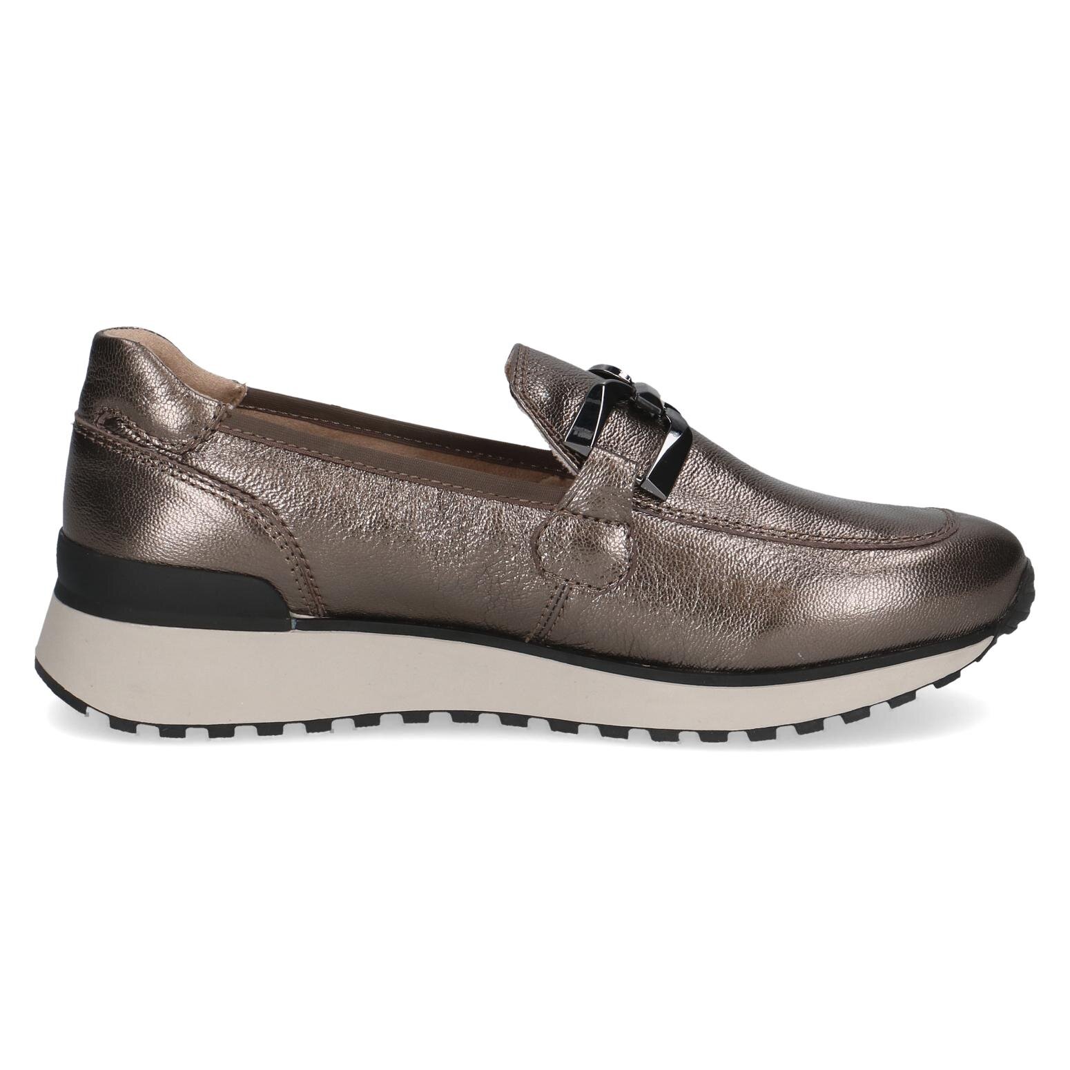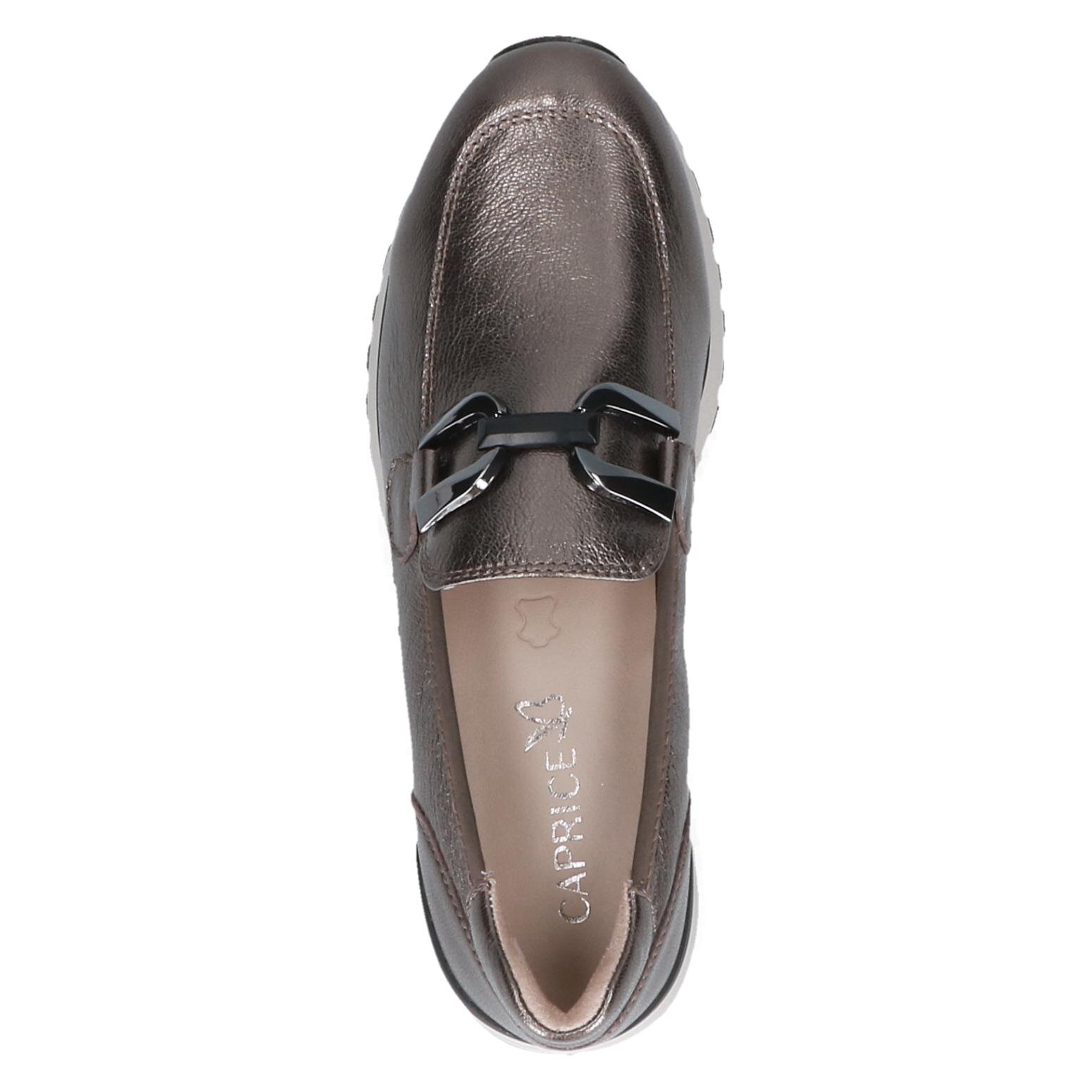 Dámske kožené mokasíny z kolekcie značky Caprice. Obľúbený strih, sú skvelým doplnením každého elegantného ale aj ležérneho outfitu. Pohodlný strih, ktorý zaručuje pohodlie a komfort. Jednoduché obúvanie a prispôsobenie sa podľa požiadaviek zaistia všité pružné vsadky v oblasti priehlavku. Kožené topánky sú zaručenou klasikou, zaručia Vám vysokú kvalitu a ide o pár, ktorý vám vydrží niekoľko sezón. Pružná podošva dokonale dopĺňa dizajn. Prírodné materiály a precízne spracovanie zaručujú pohodlnosť obuvi, jedinečné farby, ktoré sú na prírodnej báze a majú stále vlastnosti. Značka CAPRICE dosahuje svoju kvalitu, pohodlie, štýl a eleganciu. Aj kvalitné dámske topánky môžu byť vecou krásy. Vyrobené z nádherných materiálov, ktoré sú starostlivo skonštruované dizajnérmi, môžu vaše topánky reprezentovať vynikajúcu eleganciu a zapožičiavať Vám neodolateľný dotyk šarmu.