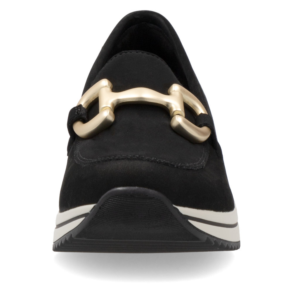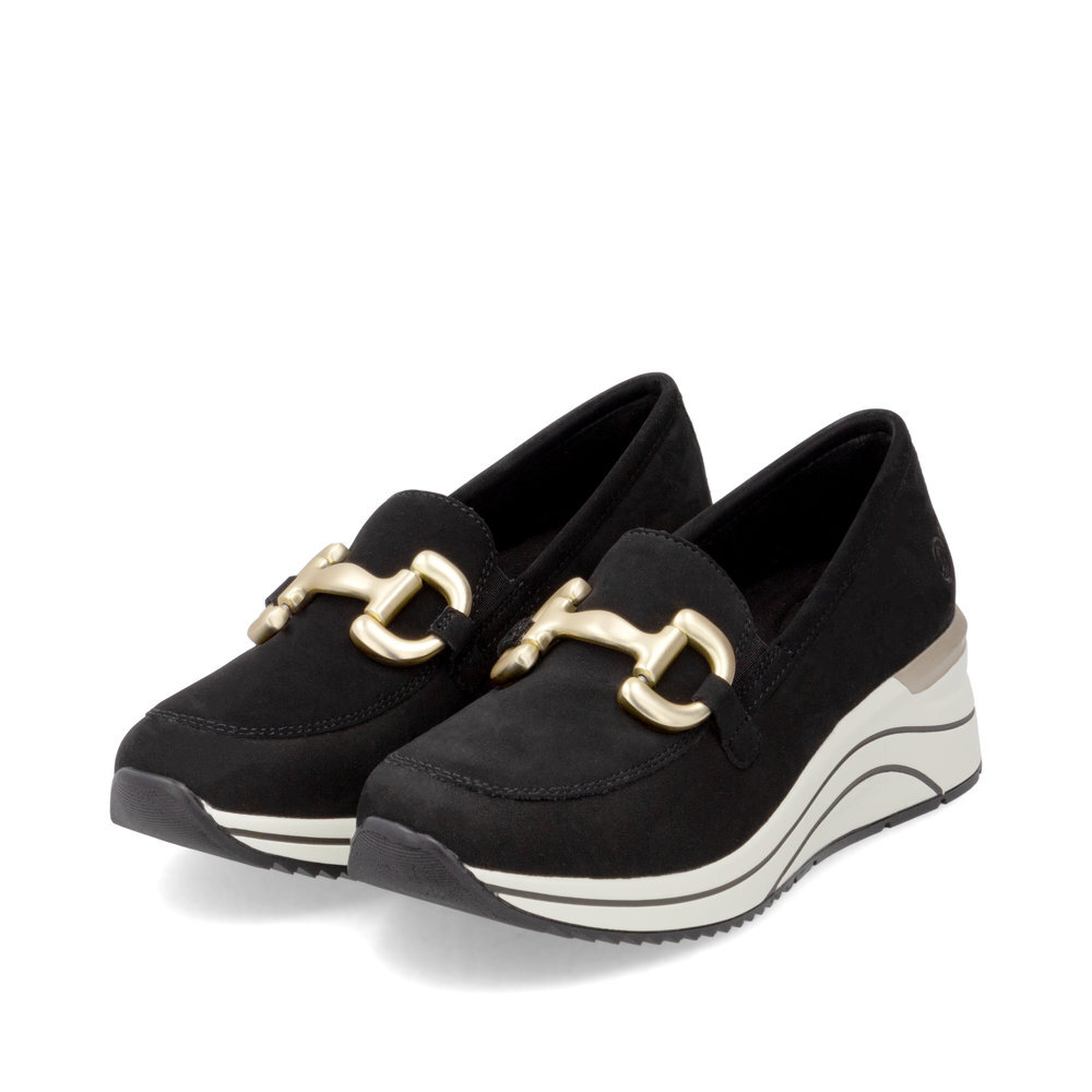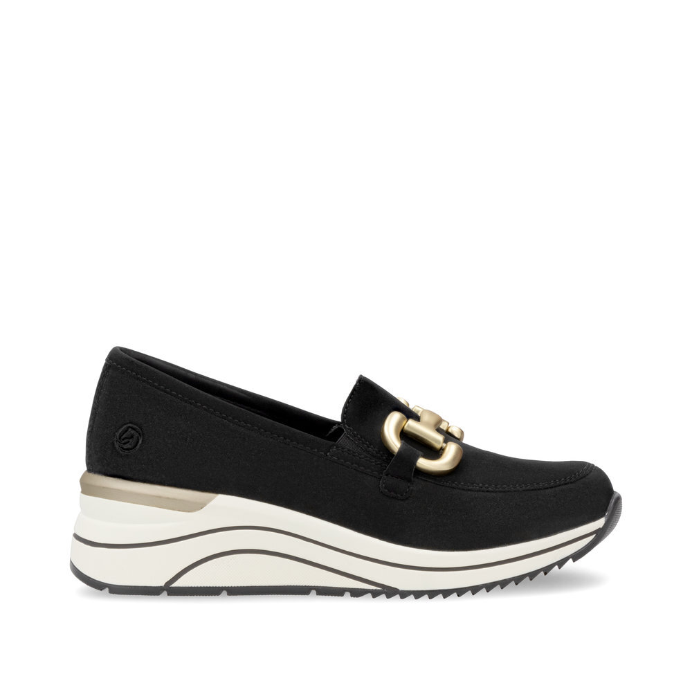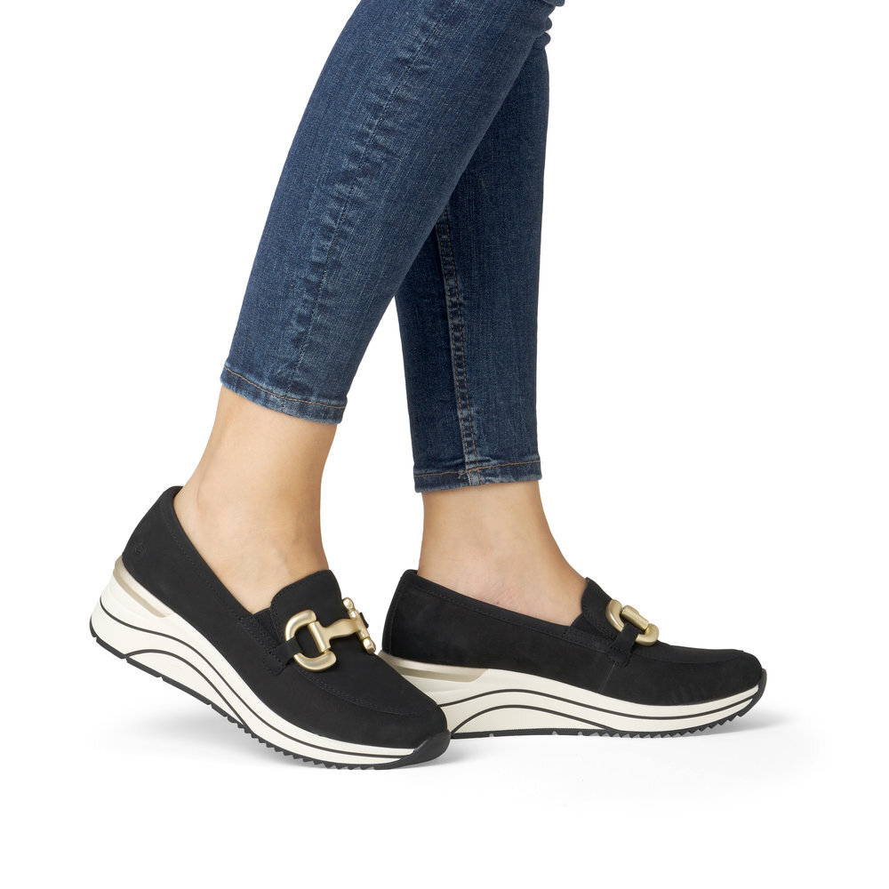 Dámske kožené mokasíny z kolekcie značky Remonte - Rieker na platforme. Obľúbený strih, sú skvelým doplnením každého elegantného ale aj ležérneho outfitu. Jednoduché obúvanie a prispôsobenie sa podľa požiadaviek zaistia všité pružné vsadky v oblasti priehlavku. Kožené topánky sú zaručenou klasikou, zaručia Vám vysokú kvalitu a ide o pár, ktorý vám vydrží niekoľko sezón. Ľahko kombinovateľná farba zvršku je dekorovaná nádhernou aplikáciou cez priehlavok, ktorá dodáva obuvi osobitosť a pôvab. Mäkká stielka, ktorá podporí príjemný došľap. Podošva dokonale dopĺňa dizajn, tlmí nárazy a otrasy. Vďaka unikátnym vlastnostiam podošvy zažijete jedinečný pocit ľahkosti pri chôdzi. Topánky z rady REMONTE Vám zabezpečia maximálny komfort pri celodennom nosení. Po vyčerpávajúcom a náročnom dni sa budú Vaše nohy cítiť svieže a oddýchnuté a to najmä vďaka ľahkým materiálom a konštrukcii.