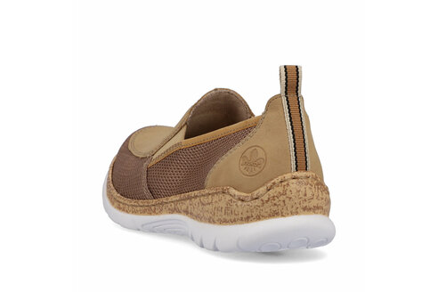 Dámske kožené mokasíny z kolekcie Rieker. Jednoduché obúvanie a prispôsobenie sa podľa požiadaviek zaistia všité pružné vsadky v oblasti priehlavku. Mäkká stielka, ktorá podporí príjemný došľap, nadväzuje na zabrúsenú pätnú časť. Pružná a robustná podošva dokonale dopĺňa športový dizajn, postará sa o Vaše pohodlie na každom kroku, tlmí nárazy a otrasy. Vďaka jej vlastnostiam je táto obuv vyhľadávaná všetkými, ktorí musia počas dňa dlho stáť a chodiť. Ak denne trávite na nohách viac času tak značka Rieker je skutočne tou pravou voľbou pre Vás. Ide doslova o vychádzkovú obuv ktorá vydrží v plnej kvalite naozaj veľmi dlhý čas. Po vyčerpávajúcom a náročnom dni sa budú Vaše nohy cítiť svieže a oddýchnuté a to najmä vďaka ľahkým materiálom.