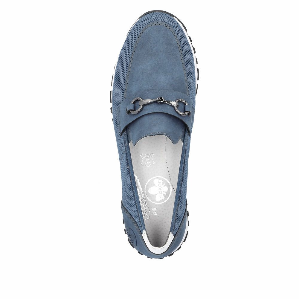 Dámske mokasíny z kolekcie značky Rieker. Jednoduché obúvanie a prispôsobenie sa podľa požiadaviek zaistia všité pružné vsadky v oblasti priehlavku. Mäkká stielka, ktorá podporí príjemný došľap, nadväzuje na zabrúsenú pätnú časť. Pružná podošva dokonale dopĺňa dizajn, postará sa o Vaše pohodlie na každom kroku, tlmí nárazy a otrasy. Vďaka jej vlastnostiam je táto obuv vyhľadávaná všetkými, ktorí musia počas dňa dlho stáť a chodiť. Ak denne trávite na nohách viac času tak značka Rieker je skutočne tou pravou voľbou pre Vás. Ide doslova o vychádzkovú obuv ktorá vydrží v plnej kvalite naozaj veľmi dlhý čas. Po vyčerpávajúcom a náročnom dni sa budú Vaše nohy cítiť svieže a oddýchnuté a to najmä vďaka ľahkým materiálom.