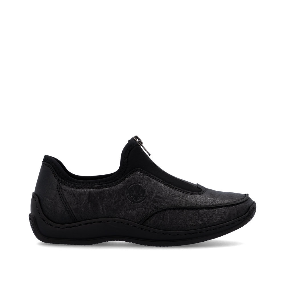 Dámske kožené poltopánky z kolekcie značky Rieker. Priestorný strih. Pre všetkých, ktorí sa chcú v topánkach cítiť pohodlne a štýlovo. Určite si ich zamilujete vďaka ich pohodlnosti a mäkkosti. Pre ľahké obutie je zapracovaný funkčný zips. Kožené topánky sú zaručenou klasikou, zaručia Vám vysokú kvalitu a ide o pár, ktorý vám vydrží niekoľko sezón. Pružná podošva dokonale dopĺňa dizajn, postará sa o Vaše pohodlie na každom kroku, tlmí nárazy a otrasy. Vďaka unikátnym vlastnostiam podošvy zažijete jedinečný pocit ľahkosti pri chôdzi. Ak denne trávite na nohách viac času tak značka Rieker je skutočne tou pravou voľbou pre Vás. Ide doslova o vychádzkovú obuv ktorá vydrží v plnej kvalite naozaj veľmi dlhý čas.