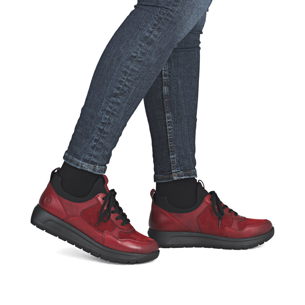 Dámske kožené tenisky z kolekcie značky Remonte - Rieker. Pohodlne a štýlovo, tak sa budete cítiť v tomto modeli topánok. Určite si ich zamilujete vďaka ich pohodlnosti a mäkkosti. Kožené topánky sú zaručenou klasikou, zaručia Vám vysokú kvalitu a ide o pár, ktorý vám vydrží niekoľko sezón. Vďaka pevnému šnurovaniu tento model topánok pevne priľne k nohe po celej dĺžke. Viazanie zároveň esteticky dotvára zvršok obuvi v klasickom štýle. Pružná podošva dokonale dopĺňa dizajn, postará sa o Vaše pohodlie na každom kroku, tlmí nárazy a otrasy. Vďaka jej vlastnostiam je táto obuv vyhľadávaná všetkými, ktorí musia počas dňa dlho stáť a chodiť. Po vyčerpávajúcom a náročnom dni sa budú Vaše nohy cítiť svieže a oddýchnuté a to najmä vďaka ľahkým materiálom.