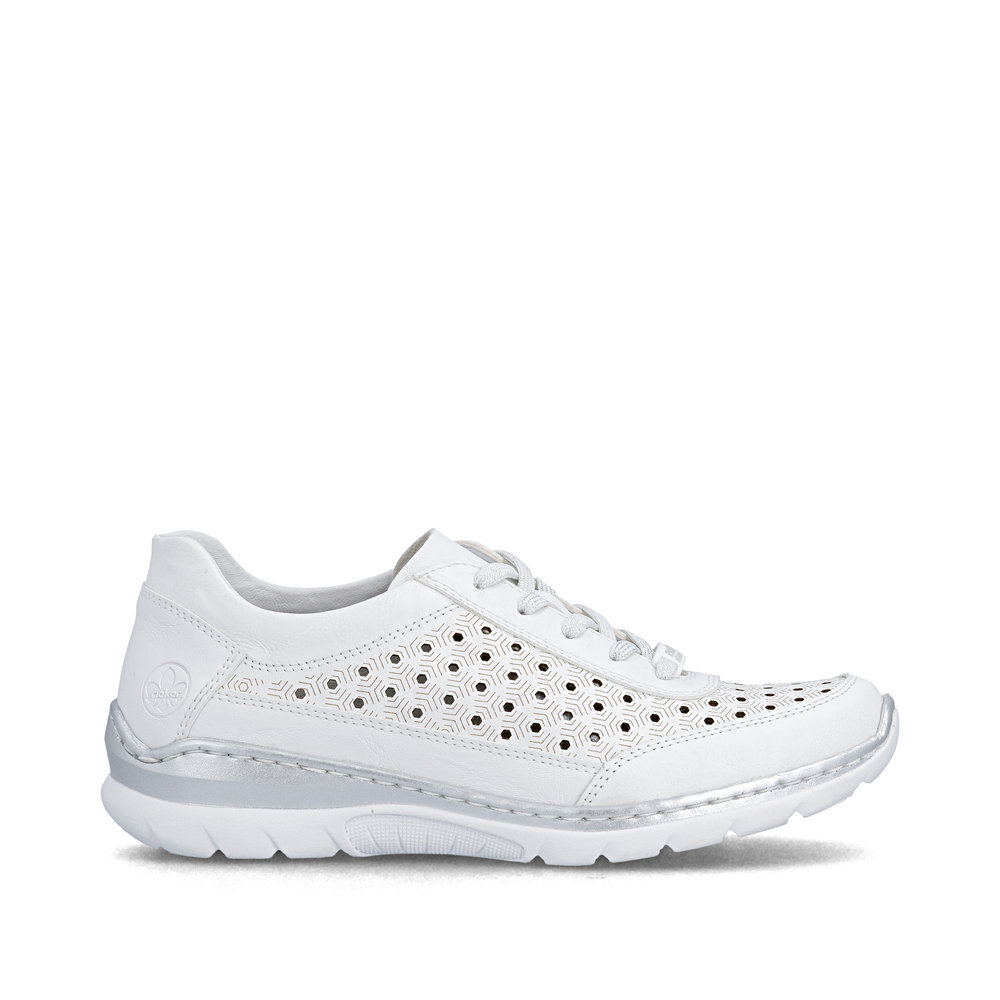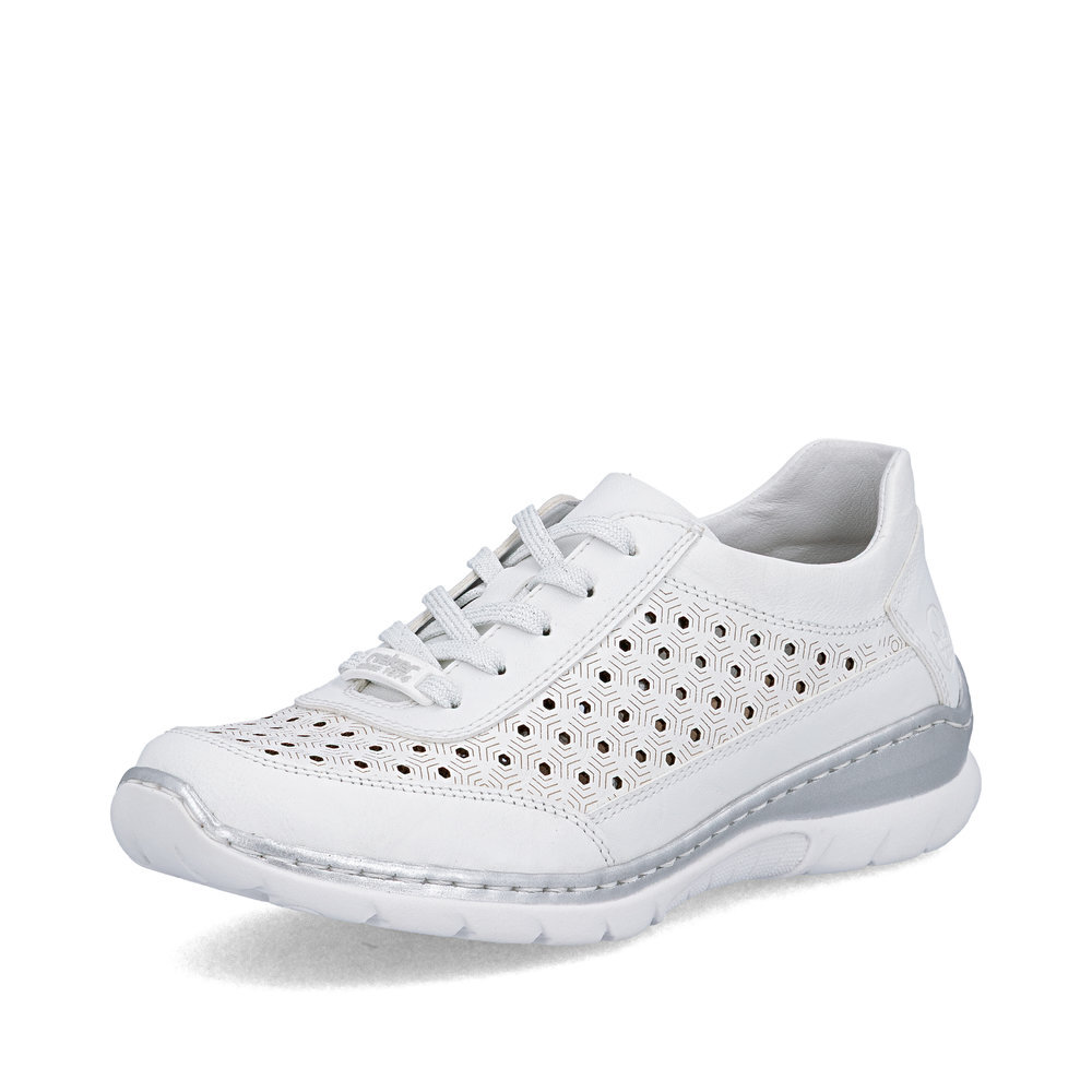 Dámske kožené poltopánky z kolekcie značky Rieker. Pohodlne a štýlovo, tak sa budete cítiť v tomto modeli topánok. Kožené topánky sú zaručenou klasikou, zaručia Vám vysokú kvalitu a ide o pár, ktorý vám vydrží niekoľko sezón. Pohodlné nosenie aj v tých najteplejších letných dňoch. Vďaka pevnému šnurovaniu tento model topánok pevne priľne k nohe po celej dĺžke. Viazanie zároveň esteticky dotvára zvršok obuvi v klasickom štýle. Pružná podošva dokonale dopĺňa dizajn, postará sa o Vaše pohodlie na každom kroku, tlmí nárazy a otrasy. Vďaka jej vlastnostiam je táto obuv vyhľadávaná všetkými, ktorí musia počas dňa dlho stáť a chodiť. Po vyčerpávajúcom a náročnom dni sa budú Vaše nohy cítiť svieže a oddýchnuté a to najmä vďaka ľahkým materiálom.