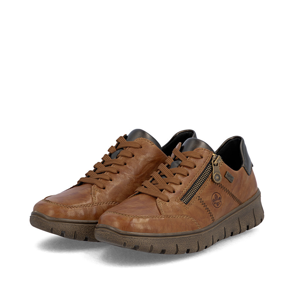 Dámske kožené tenisky z kolekcie značky Rieker. Kožené topánky sú zaručenou klasikou, zaručia Vám vysokú kvalitu a ide o pár, ktorý vám vydrží niekoľko sezón. Určite si ich zamilujete vďaka ich pohodlnosti a mäkkosti. Bočné zapínanie na zips pre jednoduché obutie a šnurovaním pre jednoduché správne nastavenie potrebnej šírky. Vďaka pevnému šnurovaniu tento model topánok pevne priľne k nohe po celej dĺžke. Viazanie zároveň esteticky dotvára zvršok obuvi v klasickom štýle. Priestorný strih. Pružná podošva dokonale dopĺňa dizajn, postará sa o Vaše pohodlie na každom kroku, tlmí nárazy a otrasy. Vďaka unikátnym vlastnostiam podošvy zažijete jedinečný pocit ľahkosti pri chôdzi. Ak denne trávite na nohách viac času tak značka Rieker je skutočne tou pravou voľbou pre Vás. TEX - funkčná vrstva, vďaka ktorej je topánka nepremokavá a napriek tomu priedušná. Po vyčerpávajúcom a náročnom dni sa budú Vaše nohy cítiť svieže a oddýchnuté a to najmä vďaka ľahkým materiálom a konštrukcii.