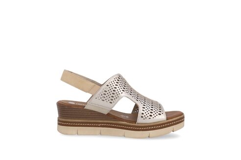 Dámske kožené sandále z kolekcie značky Remonte by Rieker na klinovom podpätku. Kožené topánky sú zaručenou klasikou, zaručia Vám vysokú kvalitu a ide o pár, ktorý vám vydrží niekoľko sezón. Určite si ich zamilujete vďaka ich pohodlnosti a mäkkosti. Komfortný model, ktorý počas letných dní zaiste využijete. Stielka je vyrobená z unikátnej pamäťovej peny, ktorá zmäkčuje každý Váš došľap. Vďaka unikátnym vlastnostiam podošvy zažijete jedinečný pocit ľahkosti pri chôdzi. S individuálne nastaviteľným uzáverom. Obuv REMONTE - jedná sa o vyššiu radu značky RIEKER, táto obuv sa vyznačuje vynikajúcou kombináciou vrchných materiálov. Topánky Vám zabezpečia maximálny komfort pri celodennom nosení. Pre všetkých, ktorí sa chcú v topánkach cítiť pohodlne a štýlovo.
