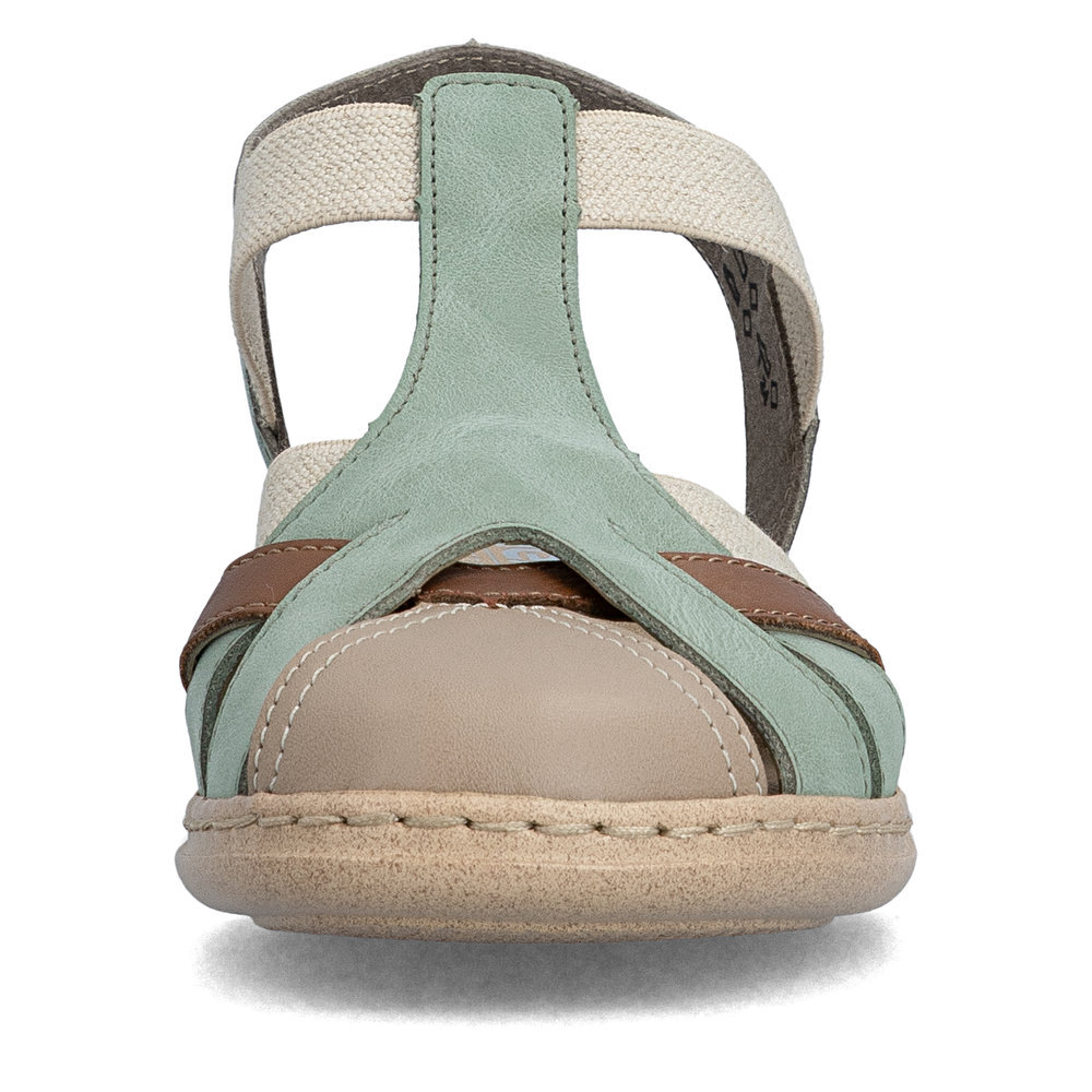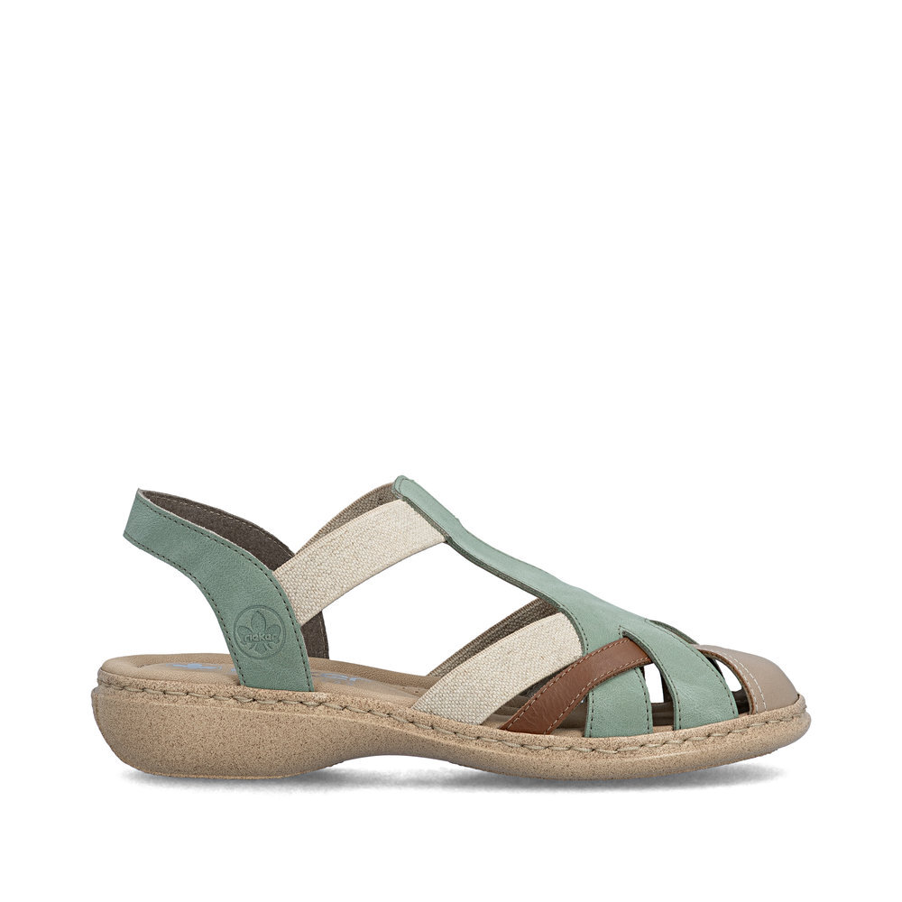 Dámske sandále z kolekcie značky Rieker na nízkom podpätku. Pre ľahké obutie sú zapracované pružné vsadky. Určite si ich zamilujete vďaka ich pohodlnosti a mäkkosti. Komfortný model, ktorý počas letných dní zaiste využijete. Vďaka unikátnym vlastnostiam podošvy zažijete jedinečný pocit ľahkosti pri chôdzi. Ak denne trávite na nohách viac času tak značka Rieker je skutočne tou pravou voľbou pre Vás. Ide doslova o vychádzkovú obuv ktorá vydrží v plnej kvalite naozaj veľmi dlhý čas. Po vyčerpávajúcom a náročnom dni sa budú Vaše nohy cítiť svieže a oddýchnuté a to najmä vďaka ľahkým materiálom a konštrukcii.