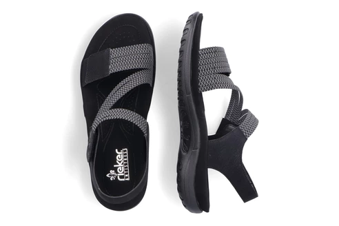 Dámske sandále z kolekcie značky Rieker. Komfortný model, ktorý počas letných dní zaiste využijete. Topánky Vám zabezpečia maximálny komfort pri celodennom nosení. S individuálne nastaviteľnými remienkami na suchý zips. Optimálna, pohodlná výška podrážky, ktorá dokonale dopĺňa dizajn, postará sa o Vaše pohodlie na každom kroku, tlmí nárazy a otrasy. Vďaka unikátnym vlastnostiam podošvy zažijete jedinečný pocit ľahkosti pri chôdzi. Ak denne trávite na nohách viac času tak značka Rieker je skutočne tou pravou voľbou pre Vás. Ide doslova o vychádzkovú obuv ktorá vydrží v plnej kvalite naozaj veľmi dlhý čas. Po vyčerpávajúcom a náročnom dni sa budú Vaše nohy cítiť svieže a oddýchnuté a to najmä vďaka ľahkým materiálom a konštrukcii.