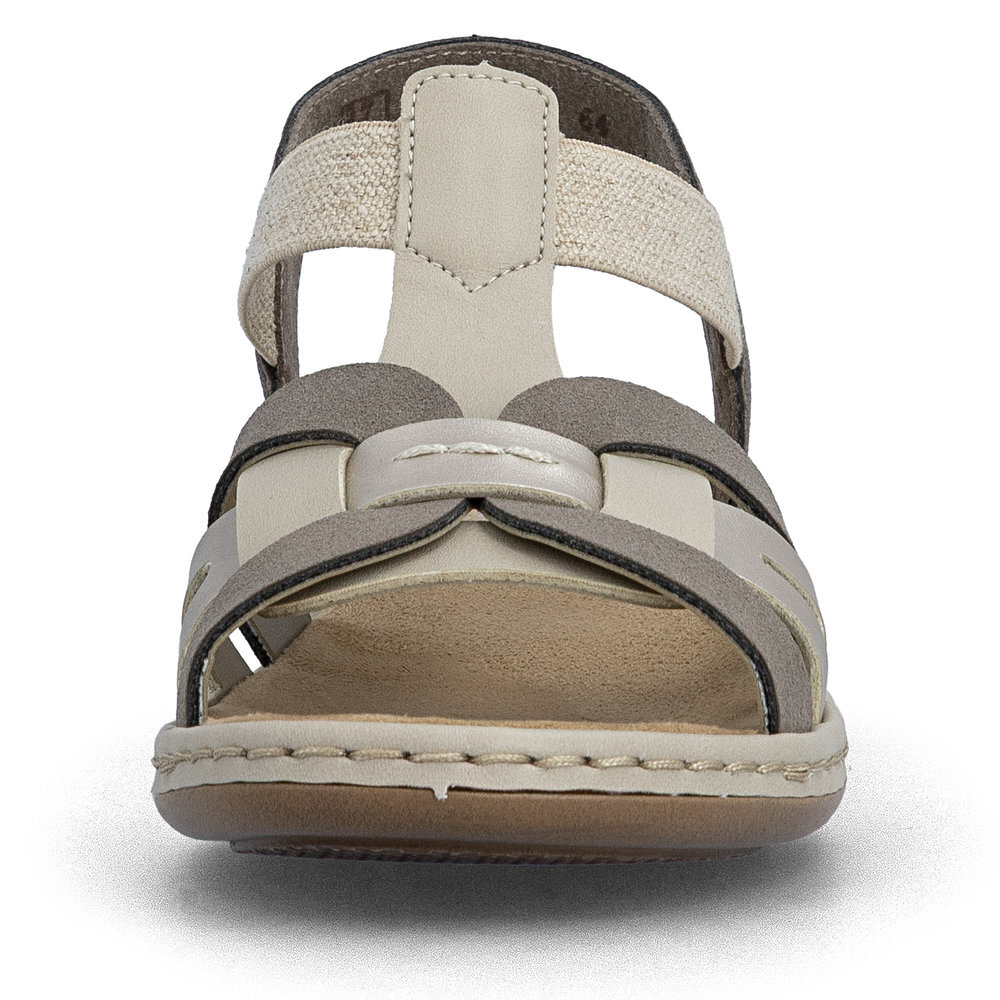 Dámske remienkové sandále z kolekcie značky Rieker. Priestorný strih, originálne, mimoriadne funkčné. Pre ľahké obutie sú zapracované pružné vsadky. Určite si ich zamilujete vďaka ich pohodlnosti a mäkkosti. Komfortný model, ktorý počas letných dní zaiste využijete. Vďaka unikátnym vlastnostiam podošvy zažijete jedinečný pocit ľahkosti pri chôdzi. Ak denne trávite na nohách viac času tak značka Rieker je skutočne tou pravou voľbou pre Vás. Ide doslova o vychádzkovú obuv ktorá vydrží v plnej kvalite naozaj veľmi dlhý čas. Po vyčerpávajúcom a náročnom dni sa budú Vaše nohy cítiť svieže a oddýchnuté a to najmä vďaka ľahkým materiálom a konštrukcii.