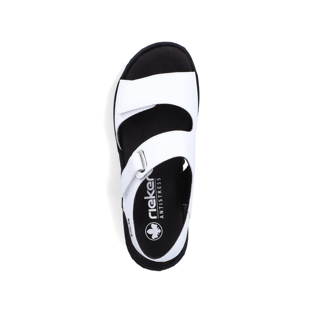 Dámske kožené sandále z kolekcie značky Rieker na platforme. Komfortný model, ktorý počas letných dní zaiste využijete. Kožené topánky sú zaručenou klasikou, zaručia Vám vysokú kvalitu a ide o pár, ktorý vám vydrží niekoľko sezón. S individuálne nastaviteľnými remienkami na suchý zips. Optimálna, pohodlná výška podrážky, ktorá dokonale dopĺňa dizajn, postará sa o Vaše pohodlie na každom kroku, tlmí nárazy a otrasy. Vďaka unikátnym vlastnostiam podošvy zažijete jedinečný pocit ľahkosti pri chôdzi. Ak denne trávite na nohách viac času tak značka Rieker je skutočne tou pravou voľbou pre Vás. Ide doslova o vychádzkovú obuv ktorá vydrží v plnej kvalite naozaj veľmi dlhý čas. Po vyčerpávajúcom a náročnom dni sa budú Vaše nohy cítiť svieže a oddýchnuté a to najmä vďaka ľahkým materiálom a konštrukcii.