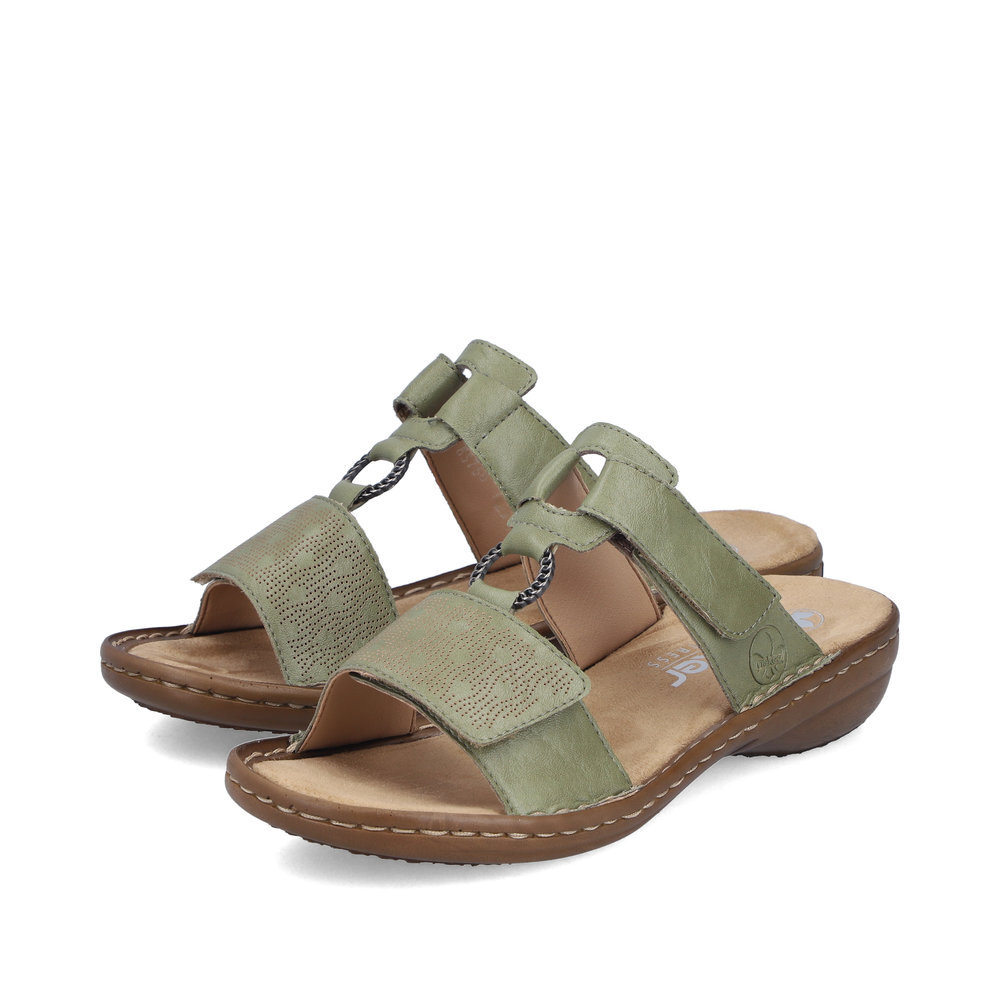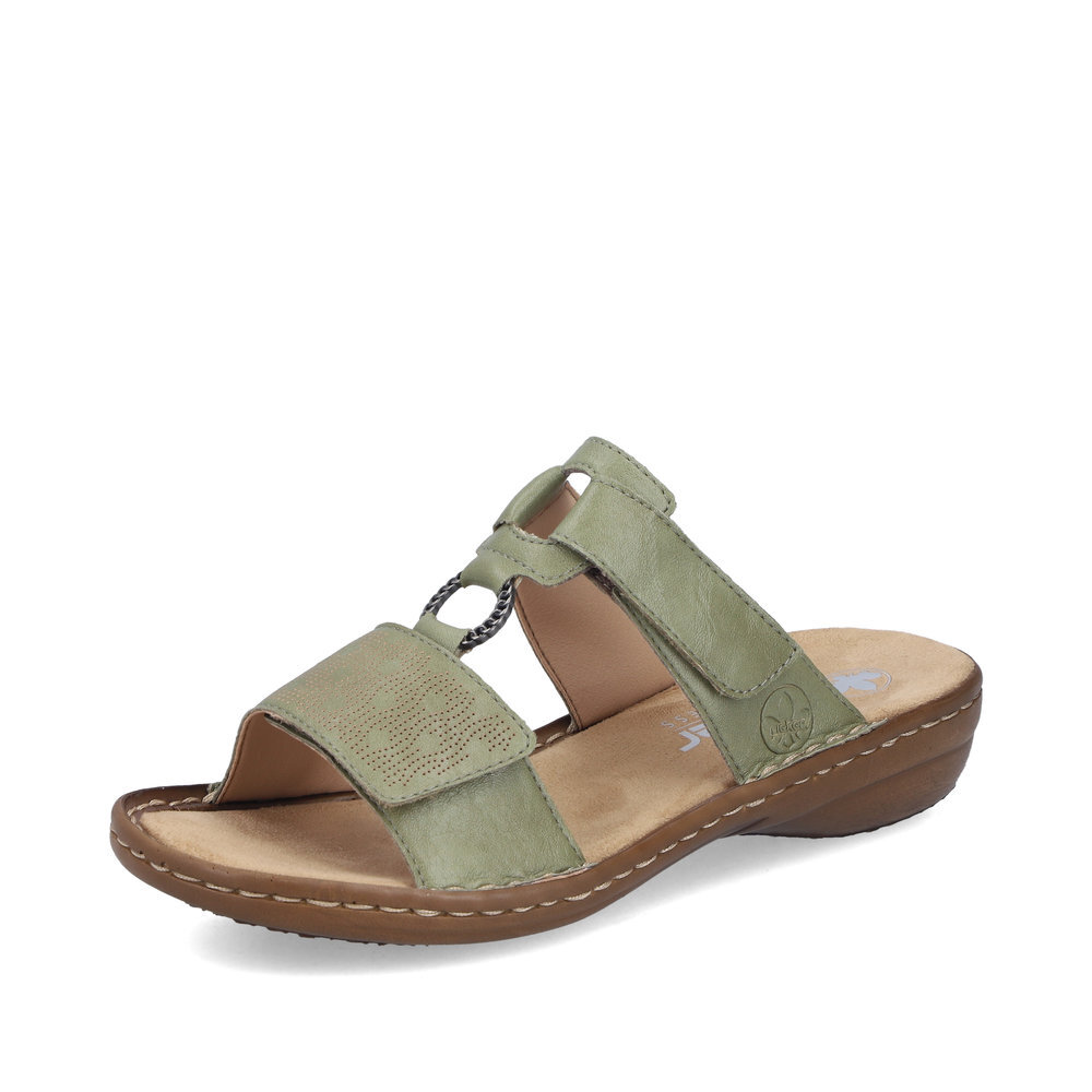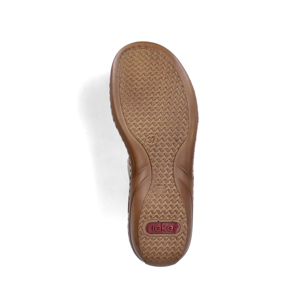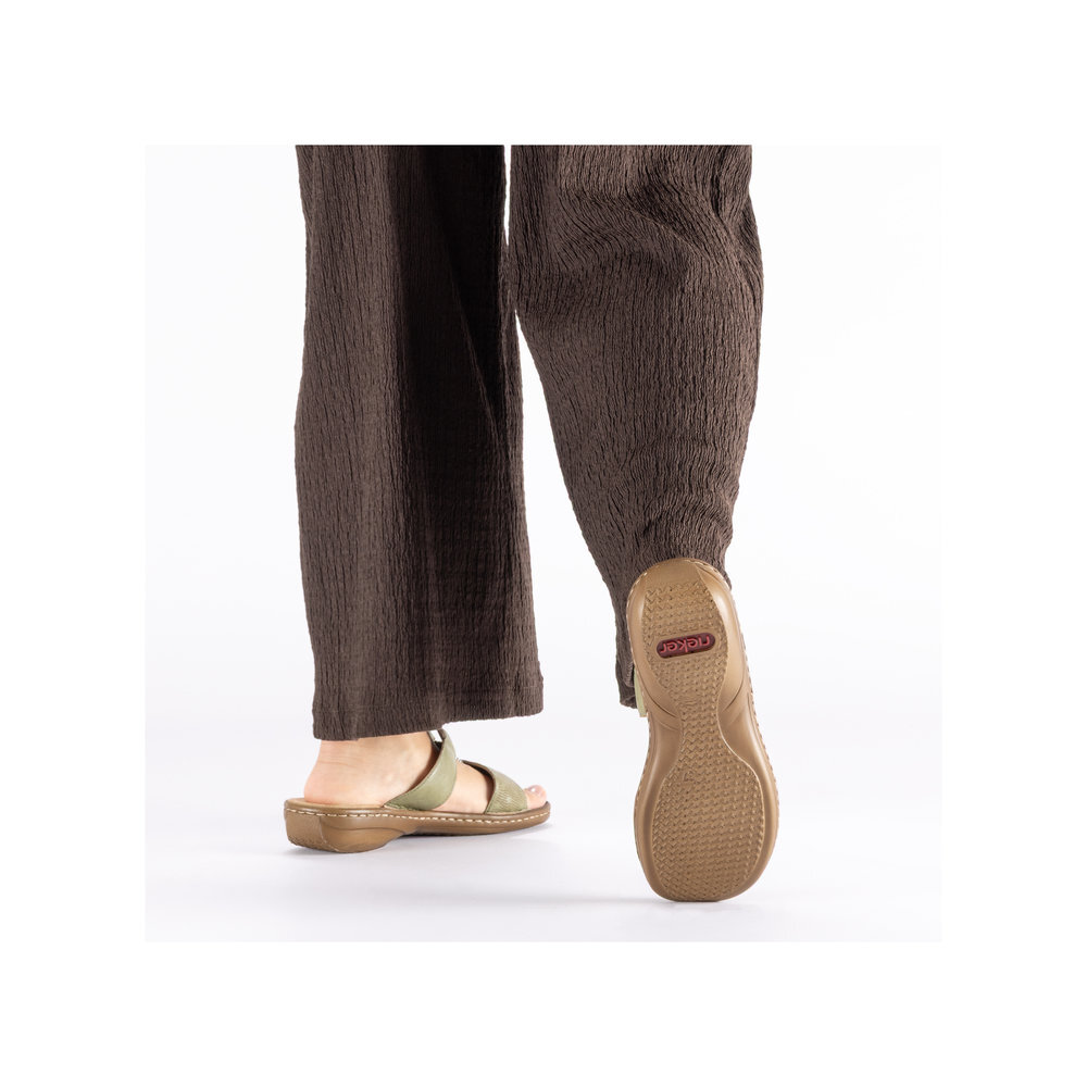 Dámske šľapky z kolekcie značky Rieker. Určite si ich zamilujete vďaka ich pohodlnosti a mäkkosti. Komfortný model, ktorý počas letných dní zaiste využijete. S individuálne nastaviteľnými remienkami. Optimálna, pohodlná výška klinu. Pružná podošva dokonale dopĺňa dizajn, postará sa o Vaše pohodlie na každom kroku, tlmí nárazy a otrasy. Vďaka unikátnym vlastnostiam podošvy zažijete jedinečný pocit ľahkosti pri chôdzi. Ak denne trávite na nohách viac času tak značka Rieker je skutočne tou pravou voľbou pre Vás. Ide doslova o vychádzkovú obuv ktorá vydrží v plnej kvalite naozaj veľmi dlhý čas. Po vyčerpávajúcom a náročnom dni sa budú Vaše nohy cítiť svieže a oddýchnuté a to najmä vďaka ľahkým materiálom a konštrukcii.