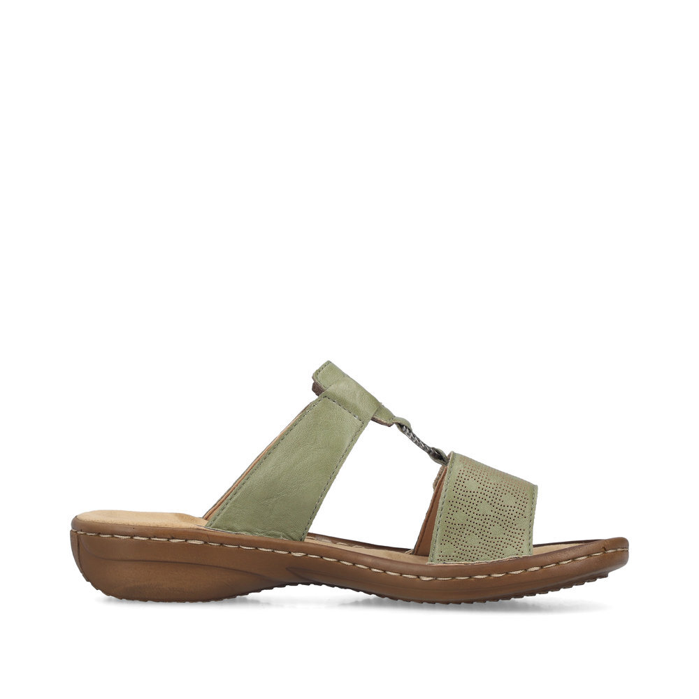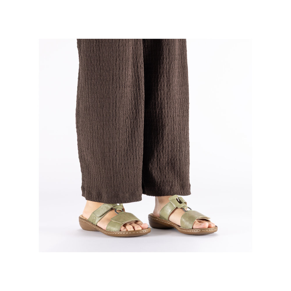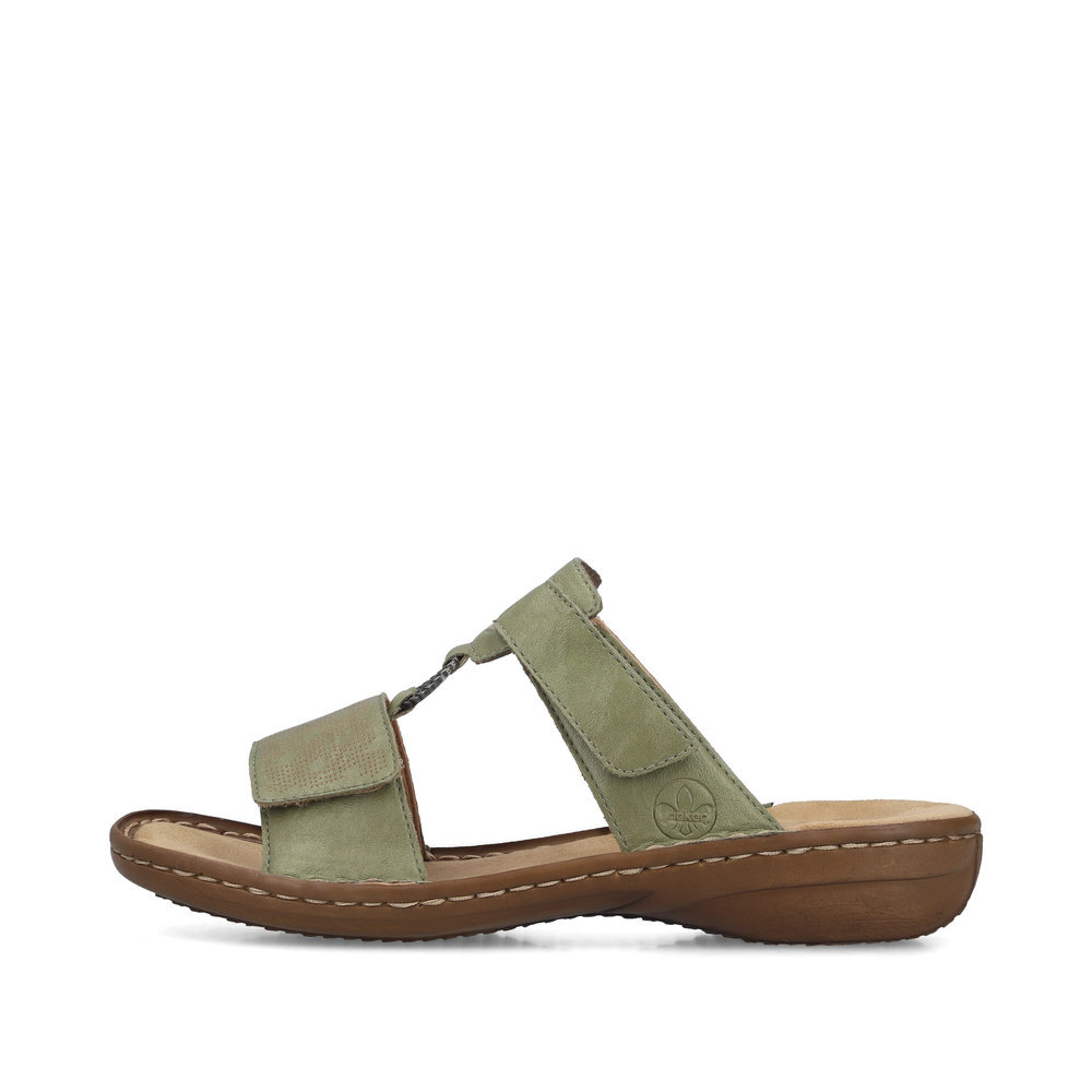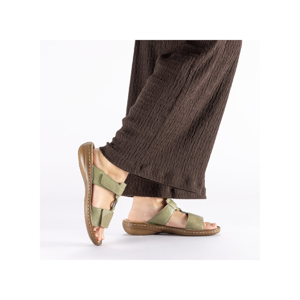Dámske šľapky z kolekcie značky Rieker. Určite si ich zamilujete vďaka ich pohodlnosti a mäkkosti. Komfortný model, ktorý počas letných dní zaiste využijete. S individuálne nastaviteľnými remienkami. Optimálna, pohodlná výška klinu. Pružná podošva dokonale dopĺňa dizajn, postará sa o Vaše pohodlie na každom kroku, tlmí nárazy a otrasy. Vďaka unikátnym vlastnostiam podošvy zažijete jedinečný pocit ľahkosti pri chôdzi. Ak denne trávite na nohách viac času tak značka Rieker je skutočne tou pravou voľbou pre Vás. Ide doslova o vychádzkovú obuv ktorá vydrží v plnej kvalite naozaj veľmi dlhý čas. Po vyčerpávajúcom a náročnom dni sa budú Vaše nohy cítiť svieže a oddýchnuté a to najmä vďaka ľahkým materiálom a konštrukcii.