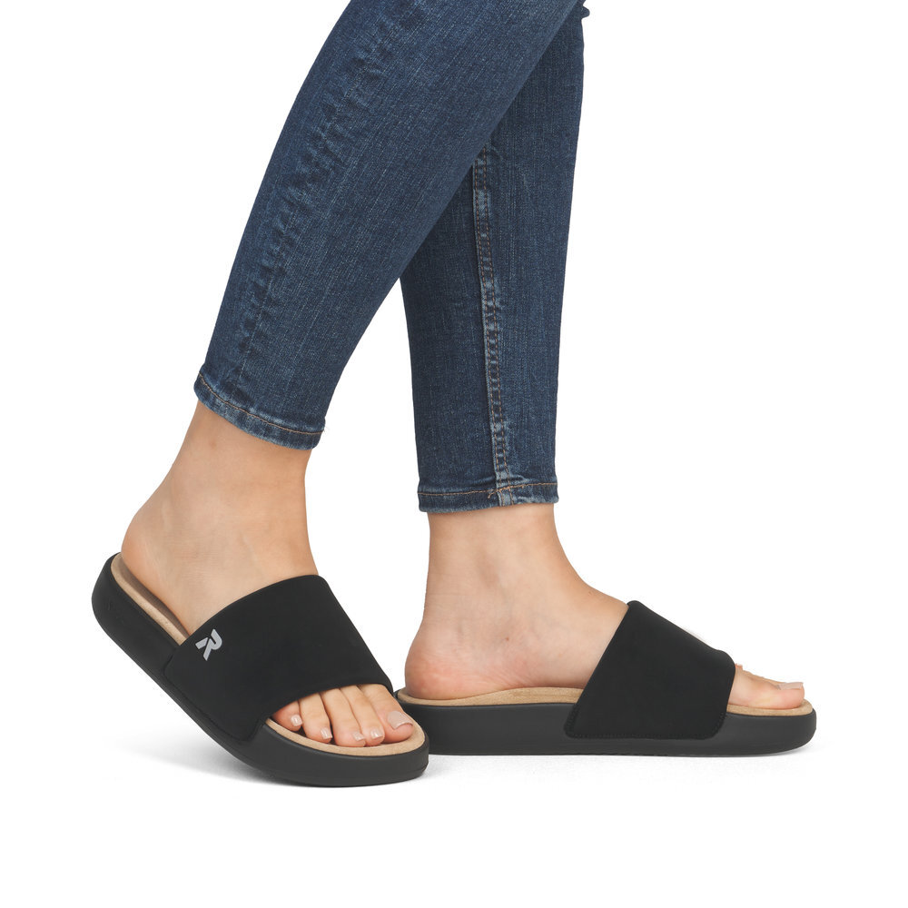 Dámske šľapky z kolekcie značky Rieker - Revolution. Pohodlný strih, ktorý zaručuje pohodlie a komfort aj počas letných horúcich dní. Určite si ich zamilujete vďaka ich pohodlnosti a mäkkosti. Pre všetkých, ktorí sa chcú v topánkach cítiť pohodlne a štýlovo. Pružná podošva dokonale dopĺňa dizajn, postará sa o Vaše pohodlie na každom kroku, tlmí nárazy a otrasy. Vďaka unikátnym vlastnostiam podošvy zažijete jedinečný pocit ľahkosti pri chôdzi. Ak denne trávite na nohách viac času tak značka Rieker je skutočne tou pravou voľbou pre Vás. Ide doslova o vychádzkovú obuv ktorá vydrží v plnej kvalite naozaj veľmi dlhý čas. Po vyčerpávajúcom a náročnom dni sa budú Vaše nohy cítiť svieže a oddýchnuté a to najmä vďaka ľahkým materiálom a konštrukcii.