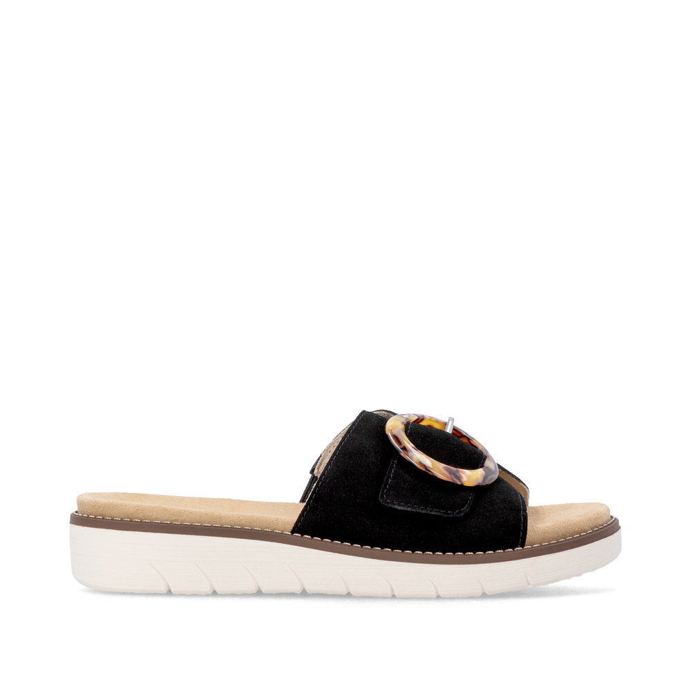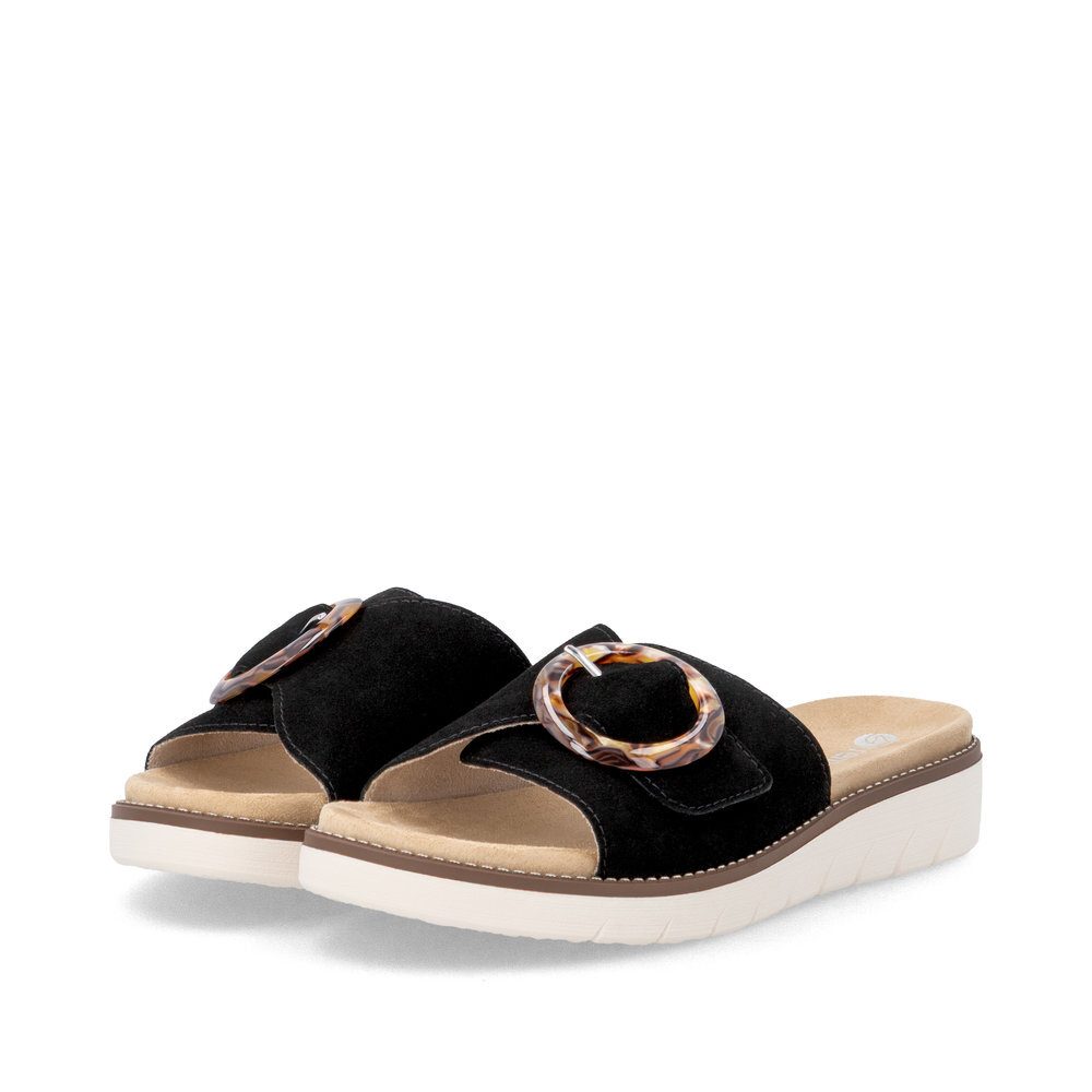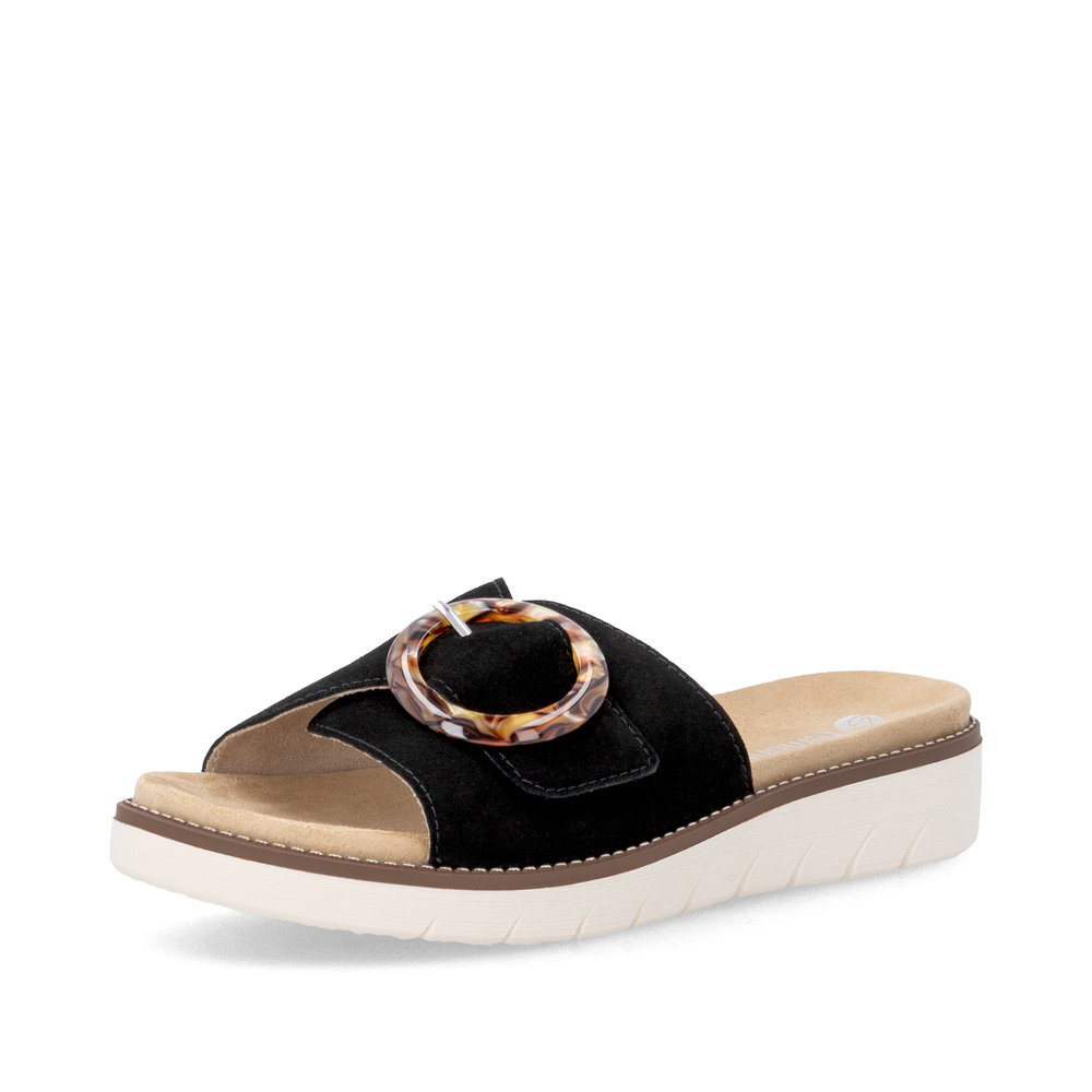 Dámske kožené šľapky z kolekcie značky Remonte - Rieker na klinovom podpätku. Komfortný model, ktorý počas letných dní zaiste využijete. Priestorný strih. Ergonomický tvar dodáva pocit absolútneho pohodlia. Po vyčerpávajúcom a náročnom dni sa budú Vaše nohy cítiť svieže a oddýchnuté a to najmä vďaka ľahkým materiálom a konštrukcii. Pružná platforma dokonale dopĺňa dizajn, postará sa o Vaše pohodlie na každom kroku. Pre všetkých, ktorí sa chcú v topánkach cítiť pohodlne a štýlovo. Obuv REMONTE - jedná sa o vyššiu radu značky RIEKER, táto obuv sa vyznačuje vynikajúcou kombináciou vrchných materiálov. Topánky z rady REMONTE Vám zabezpečia maximálny komfort pri celodennom nosení.