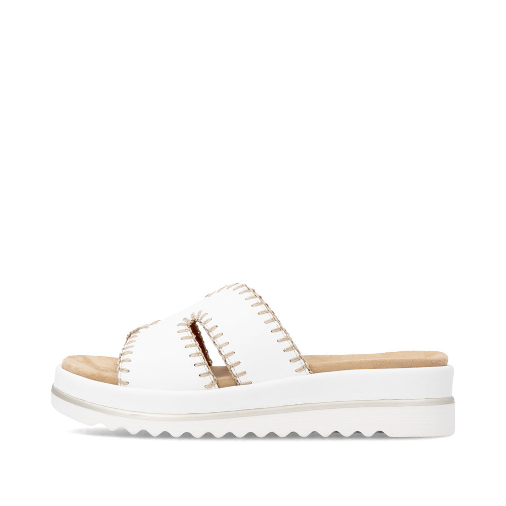 Dámske kožené šľapky z kolekcie značky Remonte - Rieker na klinovom podpätku. Obľúbený strih, sú skvelým doplnením každého elegantného ale aj ležérneho outfitu. Určite si ich zamilujete vďaka ich pohodlnosti a mäkkosti. Ergonomický tvar dodáva pocit absolútneho pohodlia. Po vyčerpávajúcom a náročnom dni sa budú Vaše nohy cítiť svieže a oddýchnuté a to najmä vďaka ľahkým materiálom a konštrukcii. Pružná platforma dokonale dopĺňa dizajn, postará sa o Vaše pohodlie na každom kroku. Kožené topánky sú zaručenou klasikou, zaručia Vám vysokú kvalitu a ide o pár, ktorý vám vydrží niekoľko sezón. Pre všetkých, ktorí sa chcú v topánkach cítiť pohodlne a štýlovo. Obuv REMONTE - jedná sa o vyššiu radu značky RIEKER, táto obuv sa vyznačuje vynikajúcou kombináciou vrchných materiálov. Topánky z rady REMONTE Vám zabezpečia maximálny komfort pri celodennom nosení.
