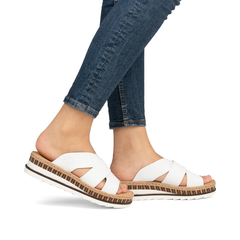 Tieto originálne dámske šľapky z kolekcie značky Rieker sú skvelým doplnením každého elegantného ale aj ležérneho outfitu. Určite si ich zamilujete vďaka ich pohodlnosti a mäkkosti. Priestorný strih. Optimálna, pohodlná výška platformy. Pre všetkých, ktorí sa chcú v topánkach cítiť pohodlne a štýlovo. Ak denne trávite na nohách viac času tak značka Rieker je skutočne tou pravou voľbou pre Vás. Ide doslova o vychádzkovú obuv ktorá vydrží v plnej kvalite naozaj veľmi dlhý čas. Po vyčerpávajúcom a náročnom dni sa budú Vaše nohy cítiť svieže a oddýchnuté a to najmä vďaka ľahkým materiálom a konštrukcii.