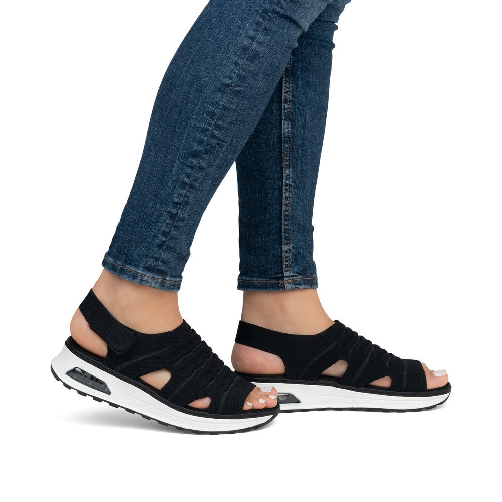 Dámske športové sandále z kolekcie značky Rieker. Priestorný strih, originálne, mimoriadne funkčné. Určite si ich zamilujete vďaka ich pohodlnosti a mäkkosti. Komfortný model, ktorý počas letných dní zaiste využijete. S individuálne nastaviteľným remienkom na suchý zips. Vďaka unikátnym vlastnostiam podošvy zažijete jedinečný pocit ľahkosti pri chôdzi. Ak denne trávite na nohách viac času tak značka Rieker je skutočne tou pravou voľbou pre Vás. Ide doslova o vychádzkovú obuv ktorá vydrží v plnej kvalite naozaj veľmi dlhý čas. Po vyčerpávajúcom a náročnom dni sa budú Vaše nohy cítiť svieže a oddýchnuté a to najmä vďaka ľahkým materiálom a konštrukcii.