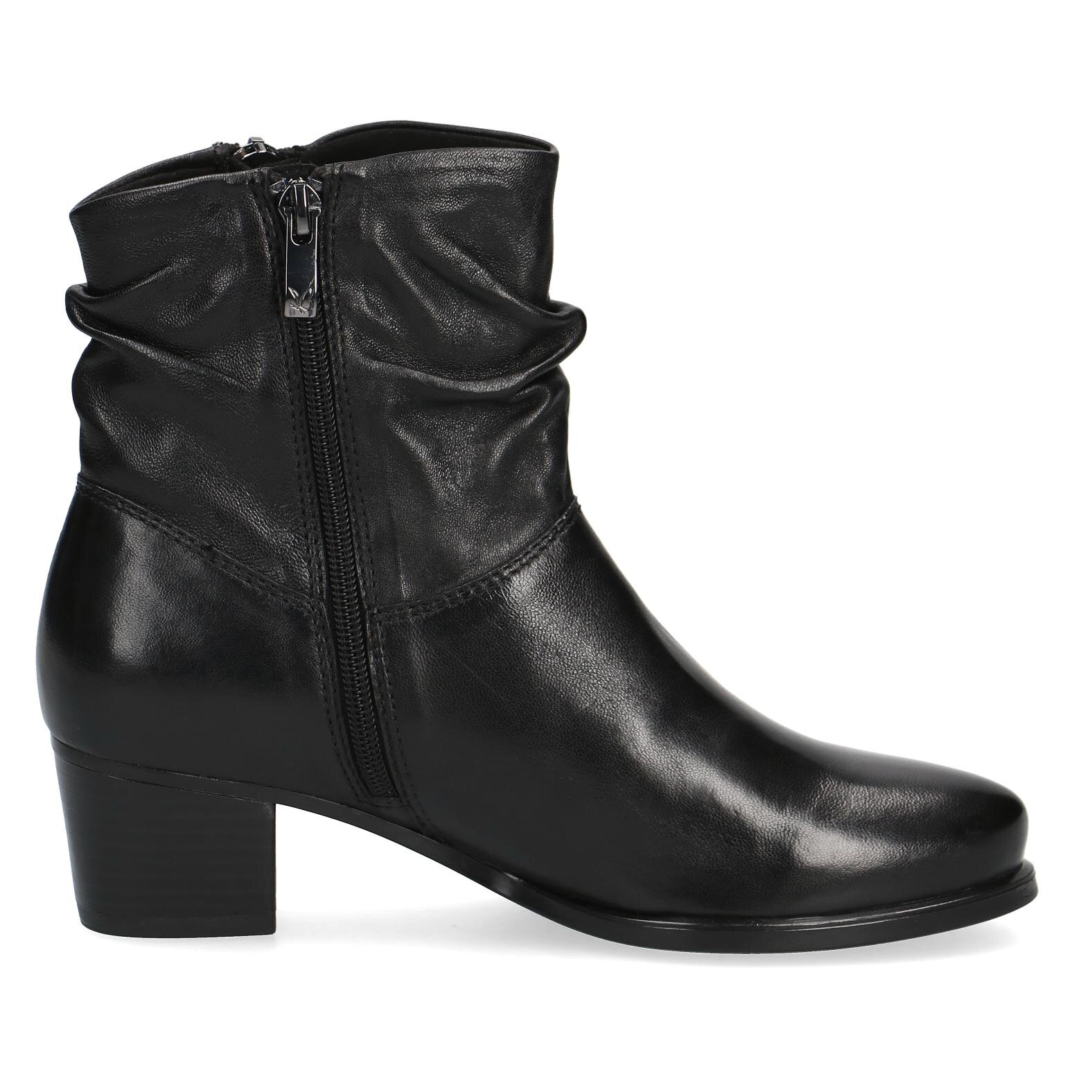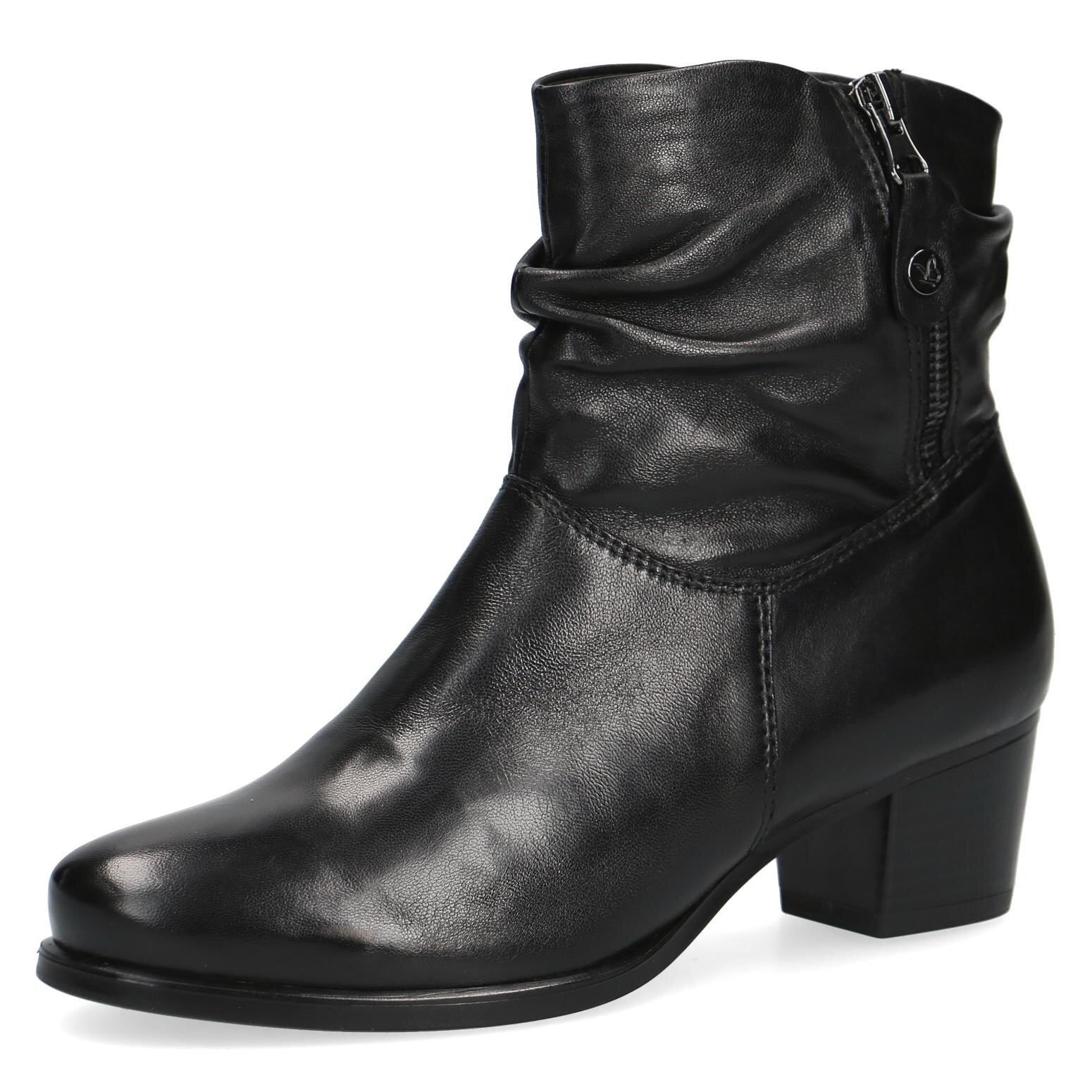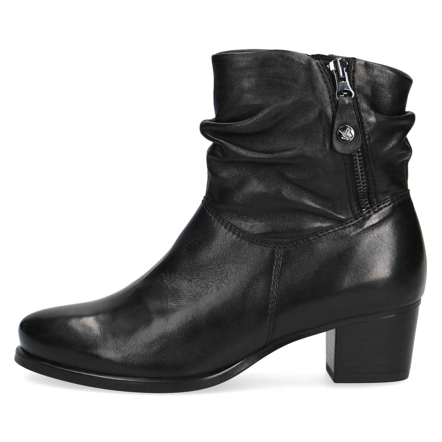 Dámske kožené čižmičky z kolekcie značky Caprice na nízkom podpätku. Pohodlne a štýlovo, tak sa budete cítiť v tomto modeli topánok. Topánky sú zateplené a tak Vás príjemne zahrejú. Sú módne a na nohe vyzerajú absolútne originálne. Priestorný strih, mäkký a hrejivý materiál vás zahalí do pohodlia v mrazivých dňoch. Bočné zapínanie na zips pre jednoduché obutie. Kožené topánky sú zaručenou klasikou, zaručia Vám vysokú kvalitu a ide o pár, ktorý vám vydrží niekoľko sezón. Značka Caprice dosahuje svoju kvalitu, pohodlie, štýl a eleganciu vďaka OnAir - kombinácii použitých vnútorných, prírodných, materiálov a zmäkčených, perforovaných stielok, SUPER flexible - flexibilným spôsobom výroby sa dosiahne maximálny komfort nosenia, ANTIshokk - podpätok so zabudovanými pneumatickými komorami a stabilizátormi tlmí nárazy a otrasy, vďaka unikátnym vlastnostiam podošvy zažijete jedinečný pocit ľahkosti pri chôdzi.