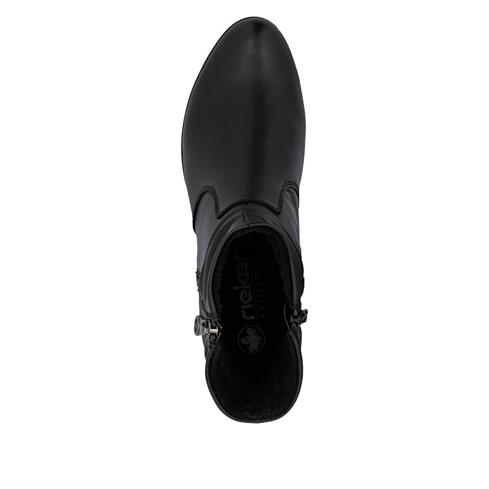 Dámske kožené čižmičky z kolekcie značky Rieker na nízkom podpätku. Sú skvelým doplnením každého elegantného ale aj ležérneho outfitu. Priestorný strih, mäkký a hrejivý materiál vás zahalí do pohodlia v mrazivých dňoch. Pre všetkých, ktorí sa chcú v topánkach cítiť pohodlne a štýlovo. Pre ľahké obutie je zapracovaný funkčný zips. Kožené topánky sú zaručenou klasikou, zaručia Vám vysokú kvalitu a ide o pár, ktorý vám vydrží niekoľko sezón. Pružná podošva dokonale dopĺňa dizajn, postará sa o Vaše pohodlie na každom kroku, tlmí nárazy a otrasy. Vďaka unikátnym vlastnostiam podošvy zažijete jedinečný pocit ľahkosti pri chôdzi. Ak denne trávite na nohách viac času tak značka Rieker je skutočne tou pravou voľbou pre Vás. Ide doslova o vychádzkovú obuv ktorá vydrží v plnej kvalite naozaj veľmi dlhý čas.