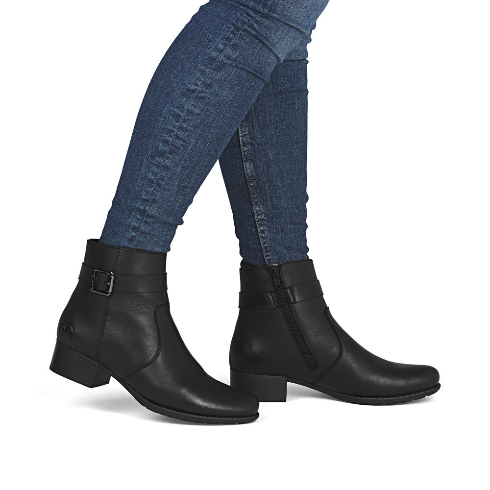 Dámske kožené kotníkové čižmičky z kolekcie značky Rieker na nízkom podpätku. Pohodlná výška podpätku. Bočné zapínanie na zips pre jednoduché obutie. Sú módne a na nohe vyzerajú absolútne originálne. Priestorný strih, mäkký a hrejivý materiál vás zahalí do pohodlia v mrazivých dňoch. Pre všetkých, ktorí sa chcú v topánkach cítiť pohodlne a štýlovo. Podošva dokonale dopĺňa dizajn, postará sa o Vaše pohodlie na každom kroku, tlmí nárazy a otrasy. Vďaka unikátnym vlastnostiam podošvy zažijete jedinečný pocit ľahkosti pri chôdzi. Ak denne trávite na nohách viac času tak značka Rieker je skutočne tou pravou voľbou pre Vás. Ide doslova o vychádzkovú obuv ktorá vydrží v plnej kvalite naozaj veľmi dlhý čas. Kožené topánky sú zaručenou klasikou, zaručia Vám vysokú kvalitu a ide o pár, ktorý vám vydrží niekoľko sezón.