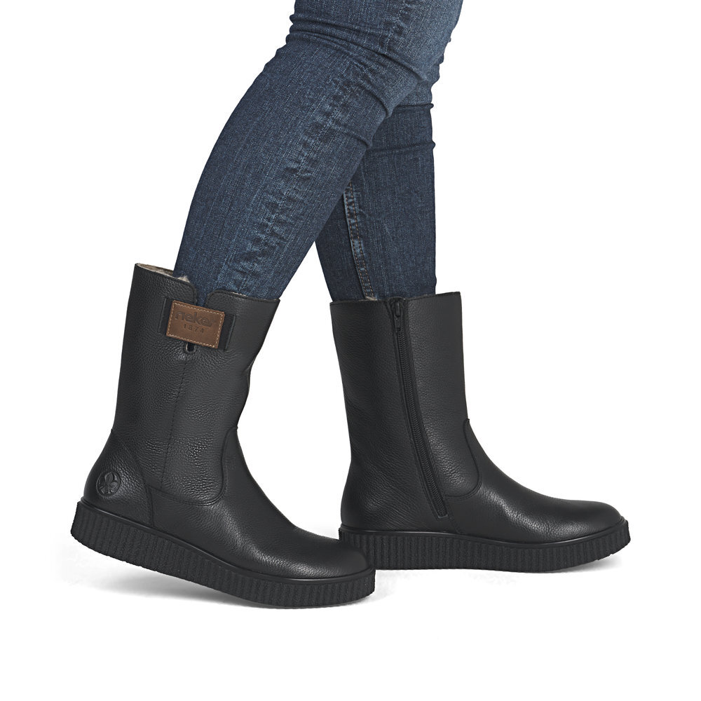 Dámske zateplené kožené čižmičky z kolekcie Rieker. Kožené topánky sú zaručenou klasikou, zaručia Vám vysokú kvalitu a ide o pár, ktorý vám vydrží niekoľko sezón. Určite si ich zamilujete vďaka ich pohodlnosti a mäkkosti. Priestorný strih, mäkký a hrejivý materiál vás zahalí do pohodlia v mrazivých dňoch. Pre ľahké obutie je zapracovaný funkčný zips. Pružná a robustná podošva dokonale dopĺňa športový dizajn, postará sa o Vaše pohodlie na každom kroku, tlmí nárazy a otrasy. Je to ideálny model, ktorý oceníte pri ceste do práce, ale aj pri bežných pochôdzkach. Ak denne trávite na nohách viac času tak značka Rieker je skutočne tou pravou voľbou pre Vás. Ide doslova o vychádzkovú obuv ktorá vydrží v plnej kvalite naozaj veľmi dlhý čas.