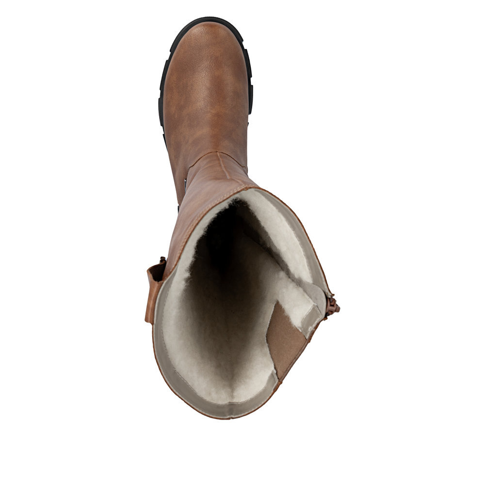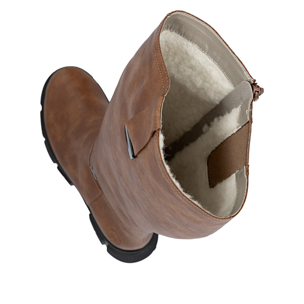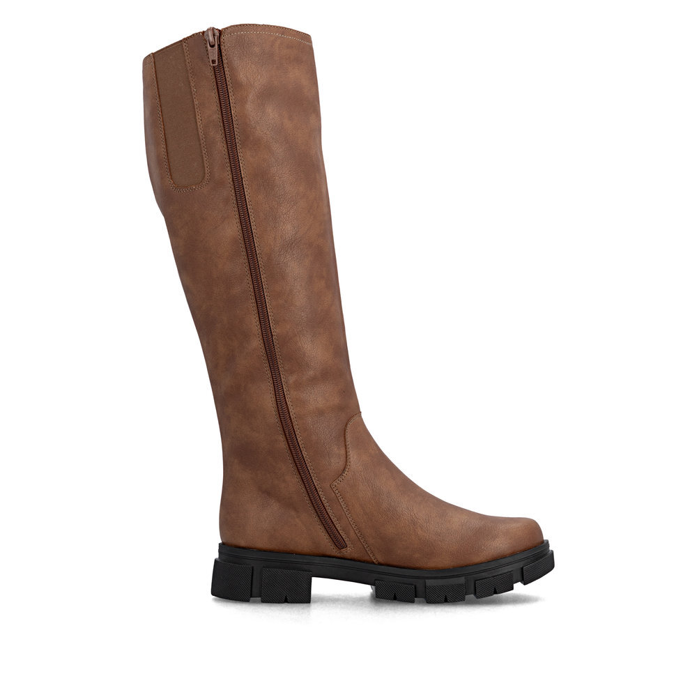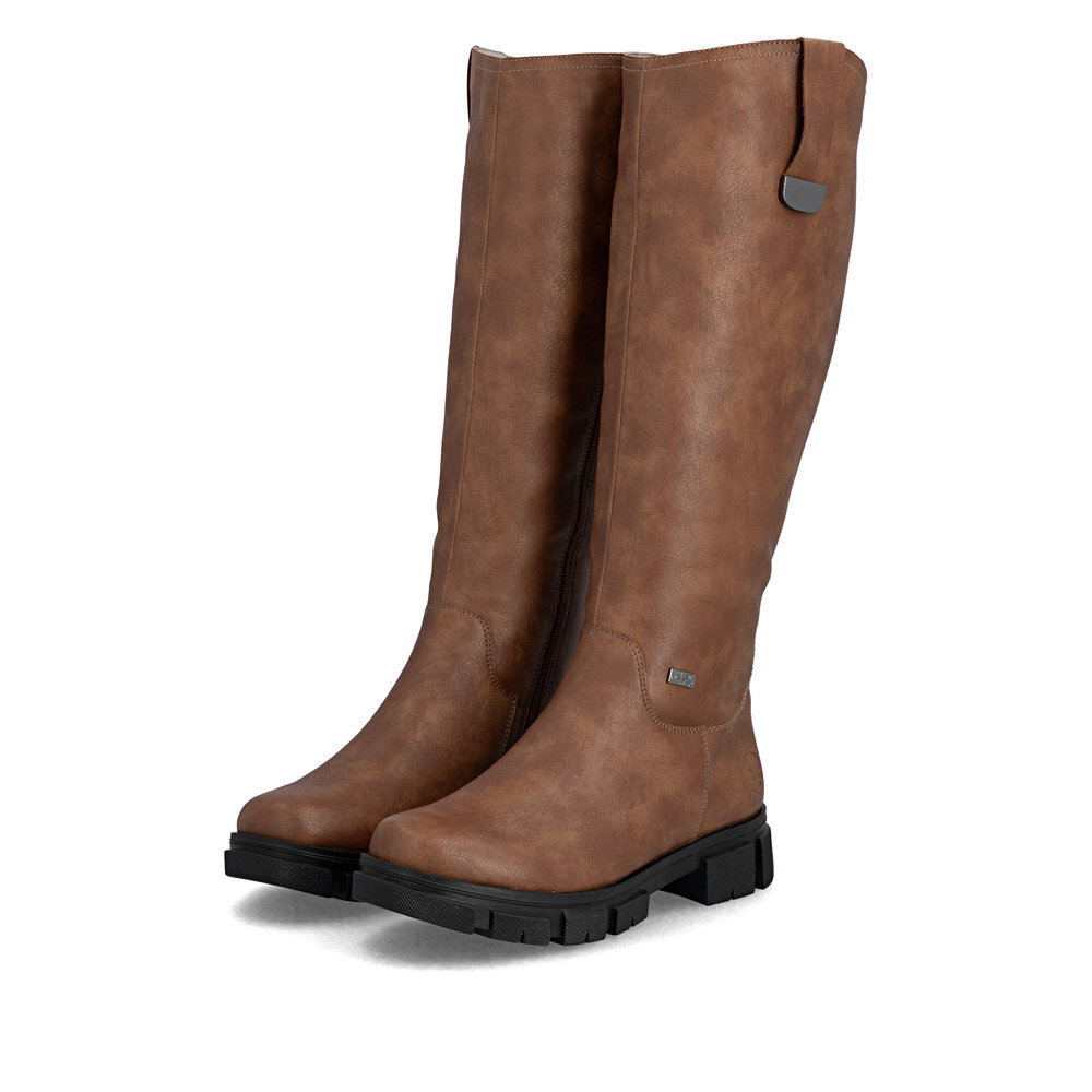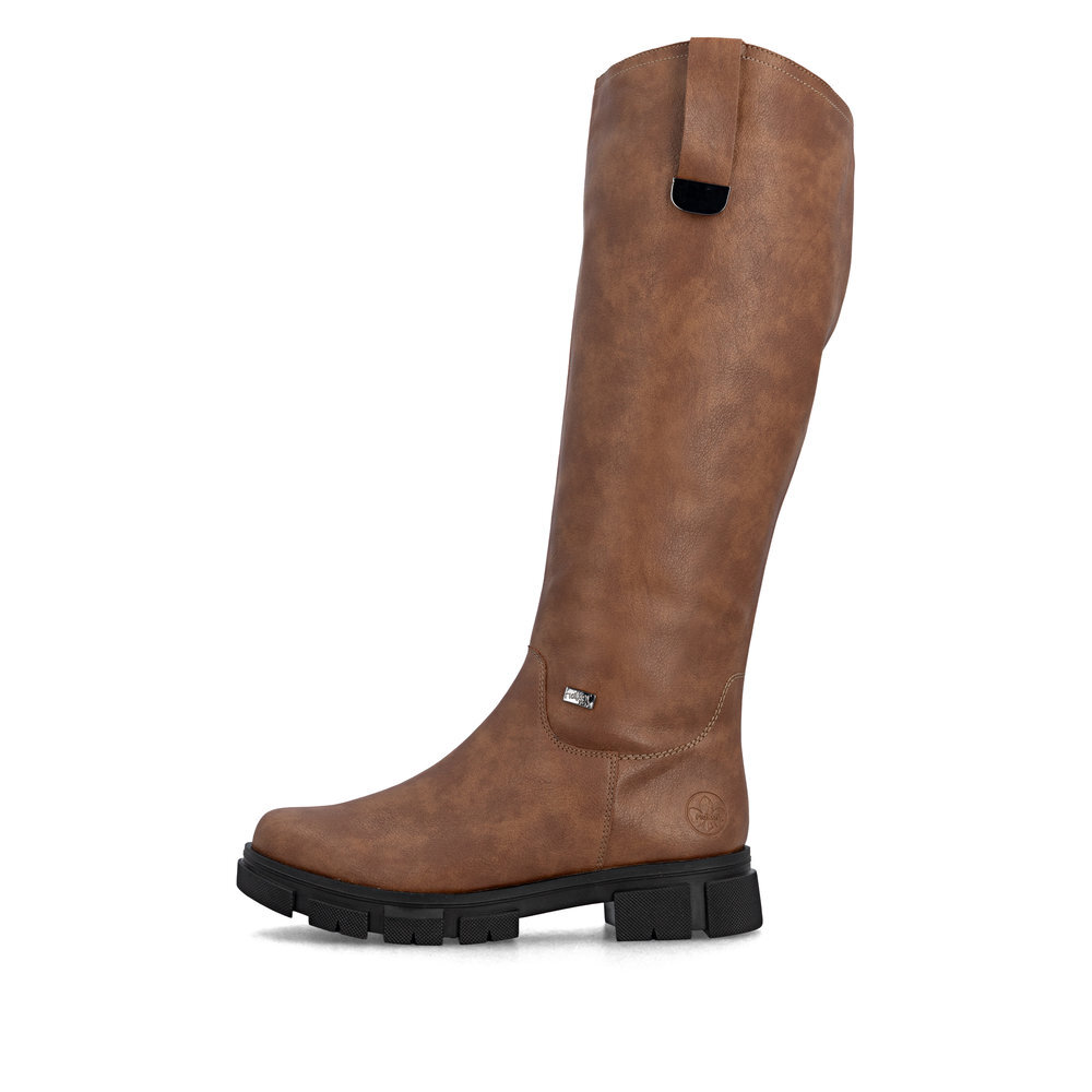 Dámske vysoké čižmy z kolekcie značky Rieker na nízkom podpätku. Obľúbený strih, sú skvelým doplnením každého elegantného ale aj ležérneho outfitu. Priestorný strih, mäkký a hrejivý materiál vás zahalí do pohodlia v mrazivých dňoch. Pre všetkých, ktorí sa chcú v topánkach cítiť pohodlne a štýlovo. Pre ľahké obutie je zapracovaný funkčný zips. Pružná podošva dokonale dopĺňa dizajn, postará sa o Vaše pohodlie na každom kroku, tlmí nárazy a otrasy. Vďaka unikátnym vlastnostiam podošvy zažijete jedinečný pocit ľahkosti pri chôdzi. Ak denne trávite na nohách viac času tak značka Rieker je skutočne tou pravou voľbou pre Vás. Ide doslova o vychádzkovú obuv ktorá vydrží v plnej kvalite naozaj veľmi dlhý čas.