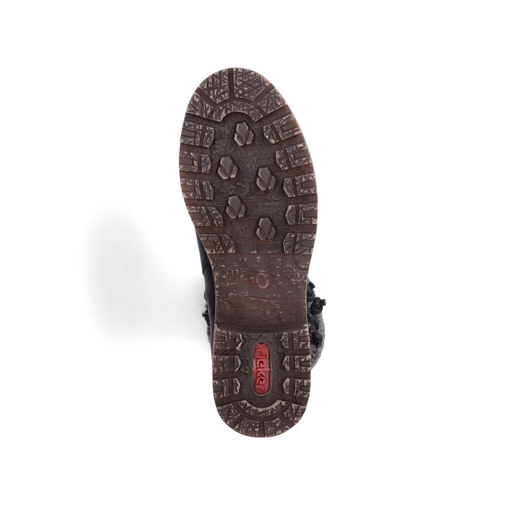 Dámske zateplené čižmičky na nízkom podpätku z kolekcie značky Rieker. Tento model je vyrobený z obľúbenej syntetickej kože, ktorá si nevyžaduje žiadnu špeciálnu starostlivosť ani impregnáciu. Plstená vložka ochráni vaše nohy pred chladom a zahalí ich do mimoriadnej hebkosti. Okrem toho má vlastnosti odvádzajúce vlhkosť a chráni proti odieraniu. Kvalitný materiál, z ktorého je vyrobená podrážka jesenných a zimných topánok, sa vyznačuje trvanlivosťou a odolnosťou voči nepriazni počasia. Priestorný tvar špičky. Je to ideálny model, ktorý oceníte pri ceste do práce, ale aj pri bežných pochôdzkach. Ak denne trávite na nohách viac času tak značka Rieker je skutočne tou pravou voľbou pre Vás. Ide doslova o vychádzkovú obuv ktorá vydrží v plnej kvalite naozaj veľmi dlhý čas. TEX - funkčná vrstva, vďaka ktorej je topánka nepremokavá a napriek tomu priedušná.