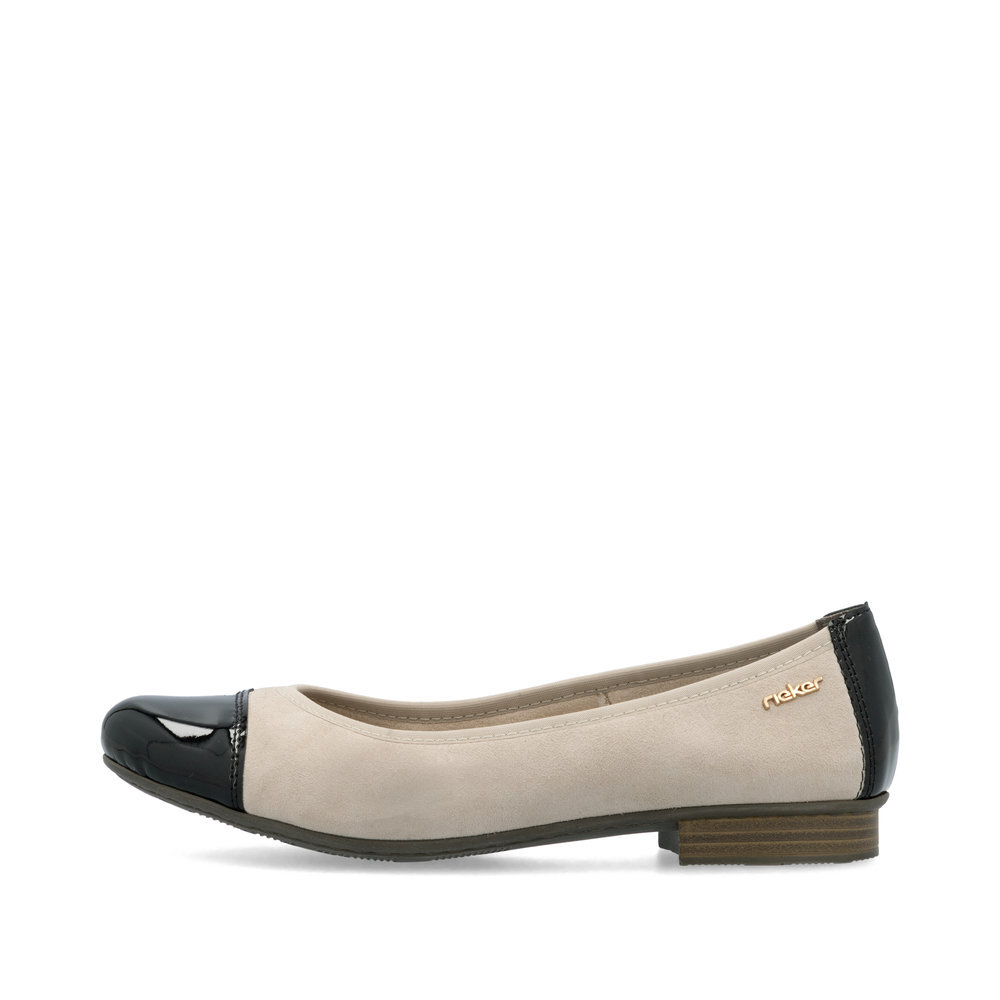 Pohodlné dámske kožené baleríny z kolekcie značky Rieker. Topánky Vám zabezpečia maximálny komfort pri celodennom nosení. Kožené topánky sú zaručenou klasikou, zaručia Vám vysokú kvalitu a ide o pár, ktorý vám vydrží niekoľko sezón. Dizajnová podošva sa postará o Vaše pohodlie na každom kroku. Tento model oceníte pri ceste do práce, ale aj pri bežných pochôdzkach. Ľahká konštrukcia s mäkkou stielkou Vám zaistí príjemnú chôdzu, rovnako ako aj ohybná podošva. Ergonomický tvar dodáva pocit absolútneho pohodlia. Ak denne trávite na nohách viac času tak značka Rieker je skutočne tou pravou voľbou pre Vás. Ide doslova o vychádzkovú obuv ktorá vydrží v plnej kvalite naozaj veľmi dlhý čas. Po vyčerpávajúcom a náročnom dni sa budú Vaše nohy cítiť svieže a oddýchnuté a to najmä vďaka ľahkým materiálom.