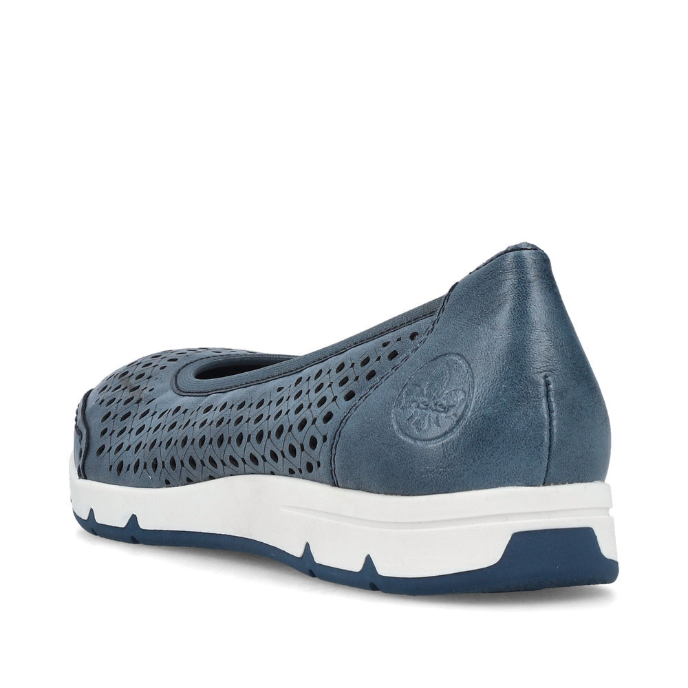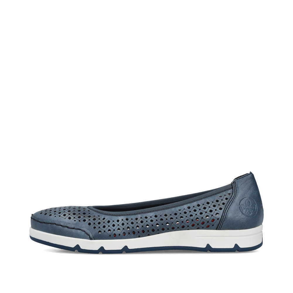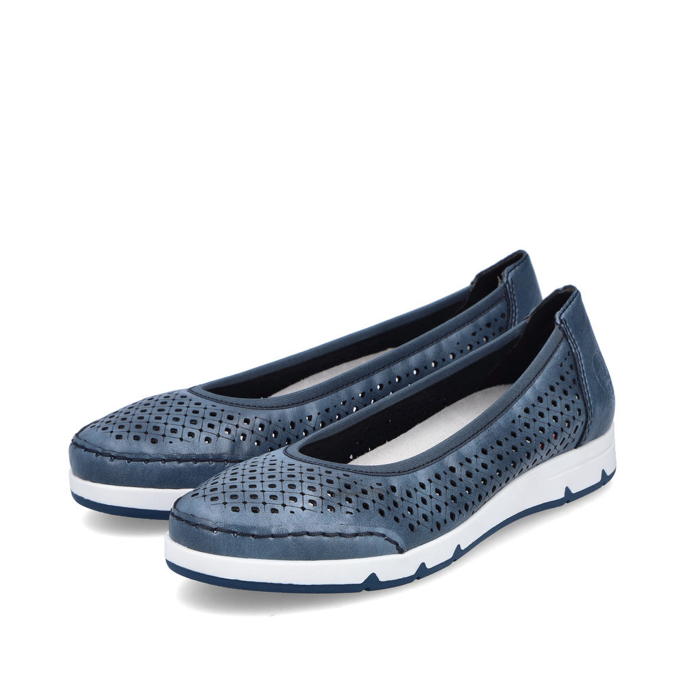 Tieto originálne dámske balerínky z kolekcie značky Rieker dodajú iskru každému Vašemu outfitu. Zvršok je priedušný, pohodlný strih, pohodlné nosenie aj v tých najteplejších dňoch. Tento model oceníte pri ceste do práce, ale aj pri bežných pochôdzkach. Topánky Vám zabezpečia maximálny komfort pri celodennom nosení. Pre všetkých, ktorí sa chcú v topánkach cítiť pohodlne a štýlovo. Ak denne trávite na nohách viac času tak značka Rieker je skutočne tou pravou voľbou pre Vás. Ide doslova o vychádzkovú obuv ktorá vydrží v plnej kvalite naozaj veľmi dlhý čas. Po vyčerpávajúcom a náročnom dni sa budú Vaše nohy cítiť svieže a oddýchnuté a to najmä vďaka ľahkým materiálom a konštrukcii.