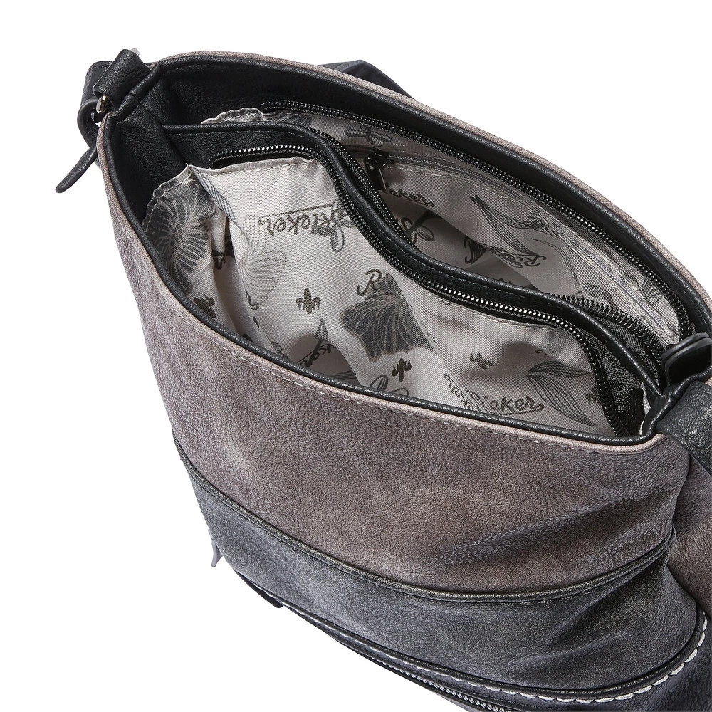 Dámska kabelka z kolekcie Rieker v štýle Crossbody. Elegancia, originalita a vysoká kvalita, ktorá uspokojí aj náročných zákazníkov. Na prednej strane sa nachádza menšie vrecko, ktoré slúži na uloženie rôznych drobností. Taška sa uzatvára praktickým zipsom. Vo nútri nájdete ďalšie kapsičky napríklad pre uschovanie Vášho telefónu. Má dlhý nastaviteľný ramenný popruh. Kabelka je delená. Tento model sa určite stane Vašim ideálnym spoločníkom na cestách po celý den. Rozmery: cca v 27 cm x š 27 cm x h 8 cm