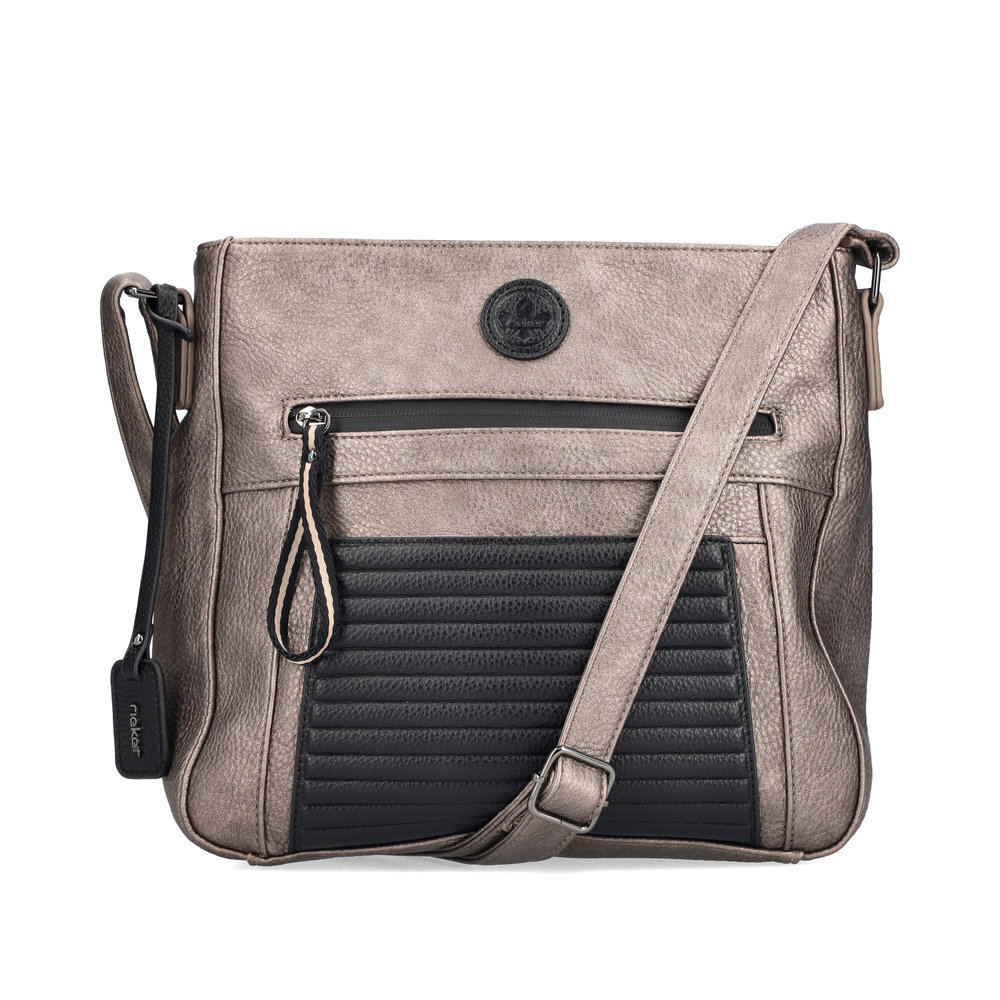 Dámska crossbody, kabelka z kolekcie značky Rieeker. Originálny dizajn, ktorý kombinuje jemne lesklý povrch so zaujímavým kontrastným prvkom – čiernym dielom s prešitím. Predná časť je prakticky vybavená dvoma vreckami, jedno je uzatvárateľné zipsom a druhé magnetickým klipom. Kabelka je rozdelená na dve samostatné časti, uzatvárané zipsom, a v každej z nich nájdete menšie vrecká pre lepšiu organizáciu. Ďalší úložný priestor poskytuje malé vrecko na zadnej časti kabelky, ideálne pre drobnosti. Nastaviteľný dlhý popruh, ktorý nie je možné odopnúť, umožňuje pohodlné nosenie cez plece alebo cez telo. Rozmery cca V 29 cm x Š 30 cm x H 10 cm, kabelka je delená, má dĺžkovo nastaviteľný popruh, ktorý nie je možné odopnúť. Maximálna dĺžka nastaviteľného popruhu je cca 125 cm.
