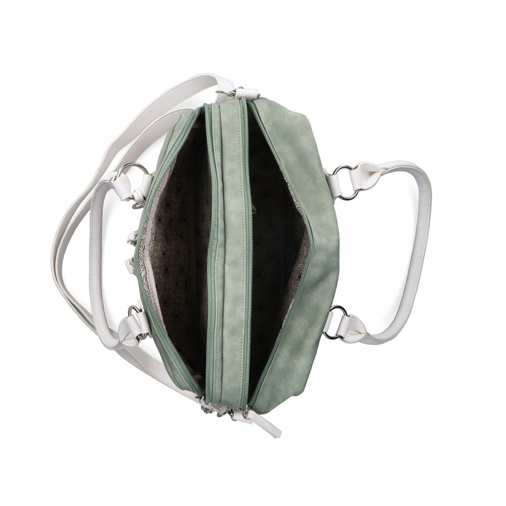 Priestranná a štýlová dámska shopper kabelka z kolekcie značky Rieker. Kabelka stredného strihu - formát A4 sa nezmestí, vyrobená je z poddajnej štruktúrovanej syntetiky a syntetiky s jemnou vzorkou, kovanie v striebornej farbe, na prednej strane dve zipsové vrecká, odopínateľný prívesok s logom značky, zhora uzatváranie na dve zipsové vrecká. Vnútorná výbava, vonkajšie vrecko je obojstranne polstrované - vhodné pre notebook či tablet, hlavné vrecko obsahuje 1x zipsové vrecko na cennosti, 2x otvorené vrecko na mobil, kľúče a pod. Madlá na rameno alebo do ruky (stredová vzdialenosť od hrany kabelky je cca 19 cm), odopínateľný ramenný popruh s dĺžkovou reguláciou 75-140 cm, rozmery cca šírka 34 cm, výška 24 cm, dno má hĺbku 12 cm.