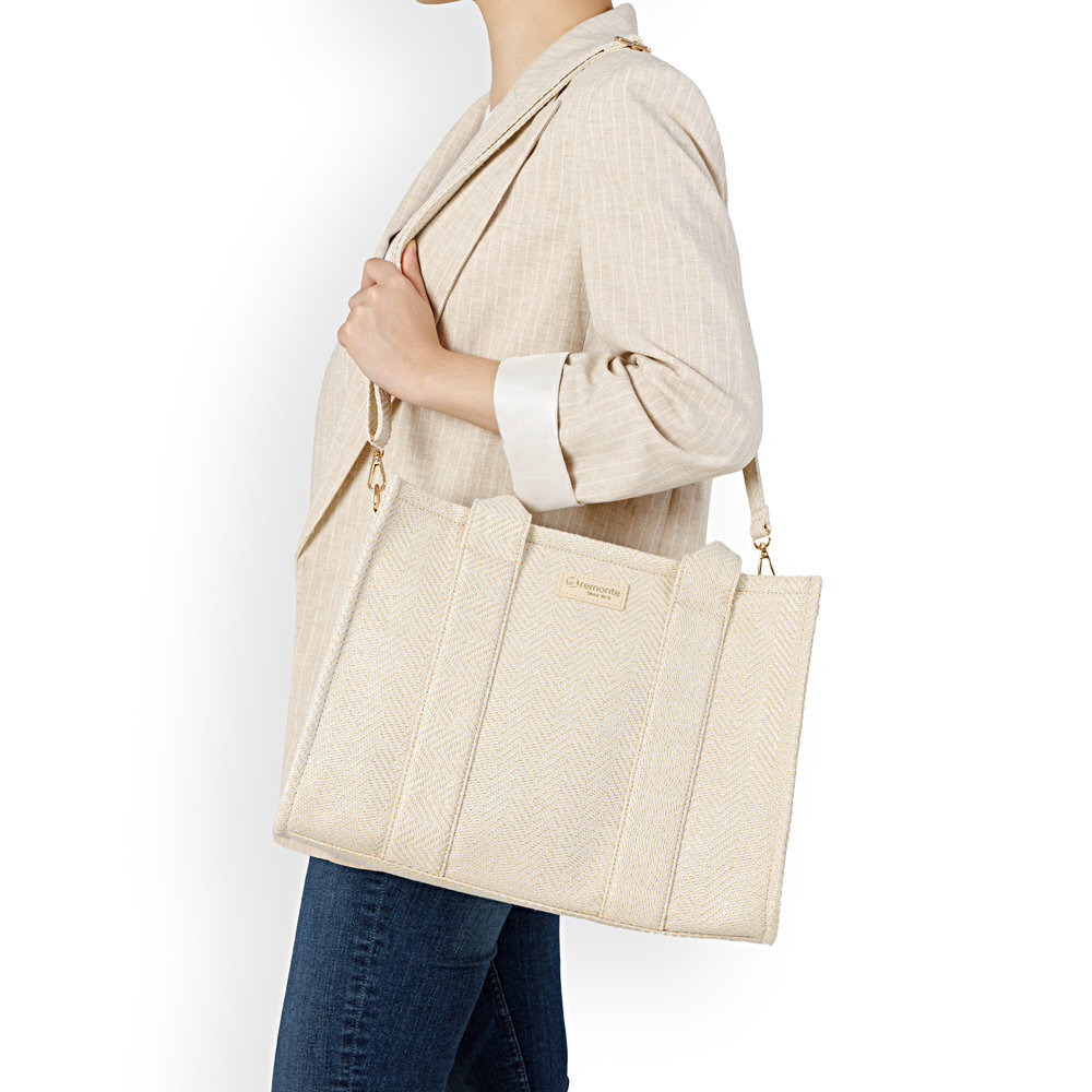 Pôvabná dámska kabelka z kolekcie značky Remonte - Rieker, ktorá spája eleganciu s moderným šarmom. Zaujme jemnou štruktúrou a vzorom, ktorý jej dodáva sofistikovaný charakter. Logo značky na prednej časti podčiarkuje jej exkluzívny vzhľad a vytvára prestížny akcent. Kabelka je navrhnutá nielen pre štýl, ale aj pre praktickosť. Vnútorný priestor bezpečne uzatvára zips a umožňuje prehľadné uloženie všetkých drobností, zatiaľ čo menšie kapsičky zabezpečia, že budete mať poruke všetko, čo potrebujete. Variabilné nosenie zaisťujú pohodlné krátke úchyty alebo možnosť pripnutia dĺžkovo nastaviteľného popruhu, ktorý umožní nosenie cez rameno či crossbody. Tento doplnok je ideálny na každodenné nosenie, do práce aj na stretnutia s priateľmi, a dokonale spája praktickosť s výrazným módnym štýlom. Rozmery: cca V 27 cm x Š 38 cm x H 15 cm, kabelka nie je delená.