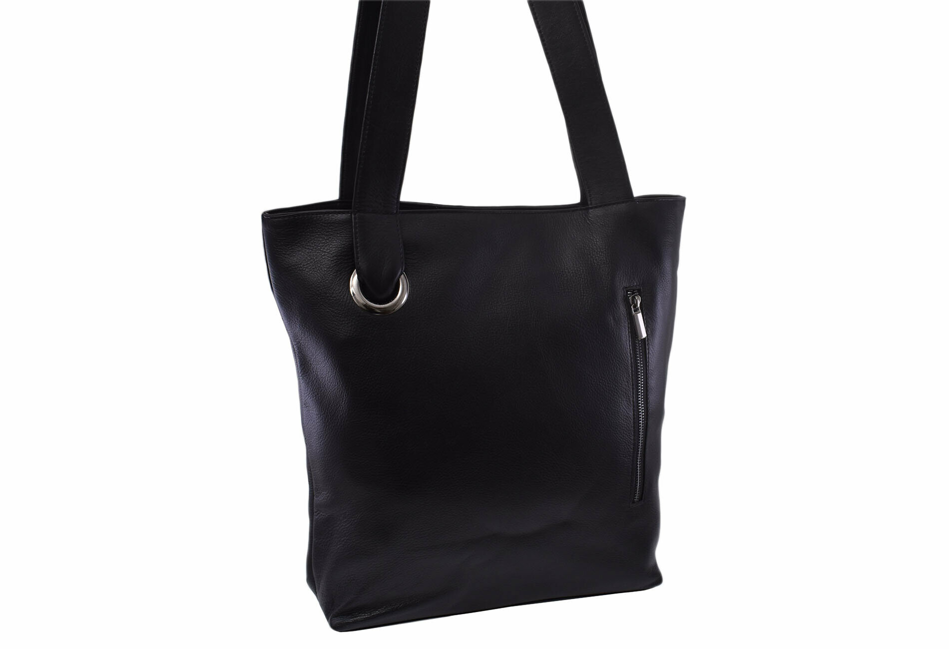 Moderná dámska, kožená shopper kabelka s elegantnými ramienkami Mercucio. Vnútorné členenie 1 veľká komora na zips, 1 veľká komora na zips rozdelená zipsovou priehradkou, 1 podšívkové vrecko na zips, 2 otvorené vrecká na mobil alebo zápisník, 1 zipsová prepážka na zadnej strane, 1 zvislá zipsová prepážka na prednej strane, ramienko hrubé 4 cm, maximálne zaťaženie 2 kg.