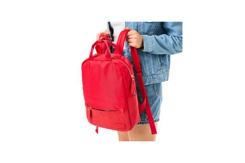 Dámsky batoh z kolekcie značky Rieker v sýtej červenej farbe Vás zaujme na prvý pohľad svojou výraznosťou a moderným dizajnom. S prehľadom sa Vám do neho zmestia každodenné potreby. Na prednej strane sa nachádza aj menšie vrecko pre rýchly prístup k drobnostiam, ktoré zdobí nášivka s logom značky. Hlavný priestor, uzatváraný vrchným zipsom, zaisťuje bezpečné uloženie vašich vecí a vo vnútri nájdete ďalšie menšie vrecká, ktoré uľahčia organizáciu drobností. Pohodlné nosenie na chrbte zaistia dva dĺžkovo nastaviteľné popruhy, a batoh má navyše dva kratšie úchyty, ktoré sú spojené pásikom s odopínateľným cvokom. Tento štýlový a praktický batoh sa stane vašim každodenným spoločníkom, či už vyrazíte do práce, školy alebo na výlet. Rozmery cca V 36 cm x Š 26 cm x H 10 cm, batoh nie je delený, má dĺžkovo nastaviteľné popruhy.