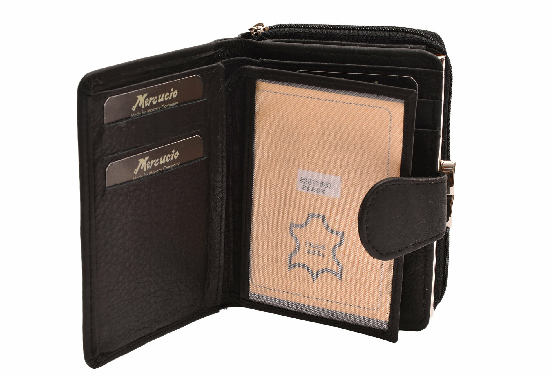 Zadná strana zostáva hladká. Takisto, šitie je nekontrastné. Členenie peňaženky: - 7 priehradiek na karty - 2 priehľadné priehradky na fotky - 2 vnútorné univerzálne priehradky - 1 veľký delený mincovník na zips - 1 veľký mincovník s kovovým rámom - 1 prepážka na bankovky