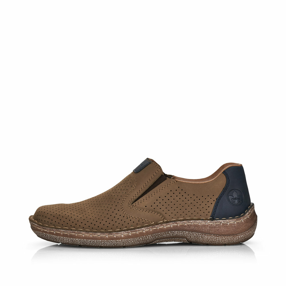Pánske kožené mokasíny z kolekcie značky Rieker. Zdobené štepovaním. Sú vybavené vsadenými gumičkami pre pohodlné vyzúvanie a obúvanie. Dizajnová podošva sa postará o Vaše pohodlie na každom kroku. Pre všetkých, ktorí sa chcú v topánkach cítiť pohodlne a štýlovo. Perforovanie - dierkovanie v hornej časti zvršku dávajú topánkam svoj osobitý, módny a vzdušný vzhľad. Tento model oceníte pri ceste do práce, ale aj pri bežných pochôdzkach. Ak denne trávite na nohách viac času tak značka Rieker je skutočne tou pravou voľbou pre Vás. Pohodlná, ľahká konštrukcia s mäkkou koženou stielkou zaistí príjemnú chôdzu, rovnako ako aj ohybná podošva. Z kolekcie Antistress. Protistresový systém znamená pohodlie pri každom kroku vďaka ľahkej, flexibilnej podrážke.
